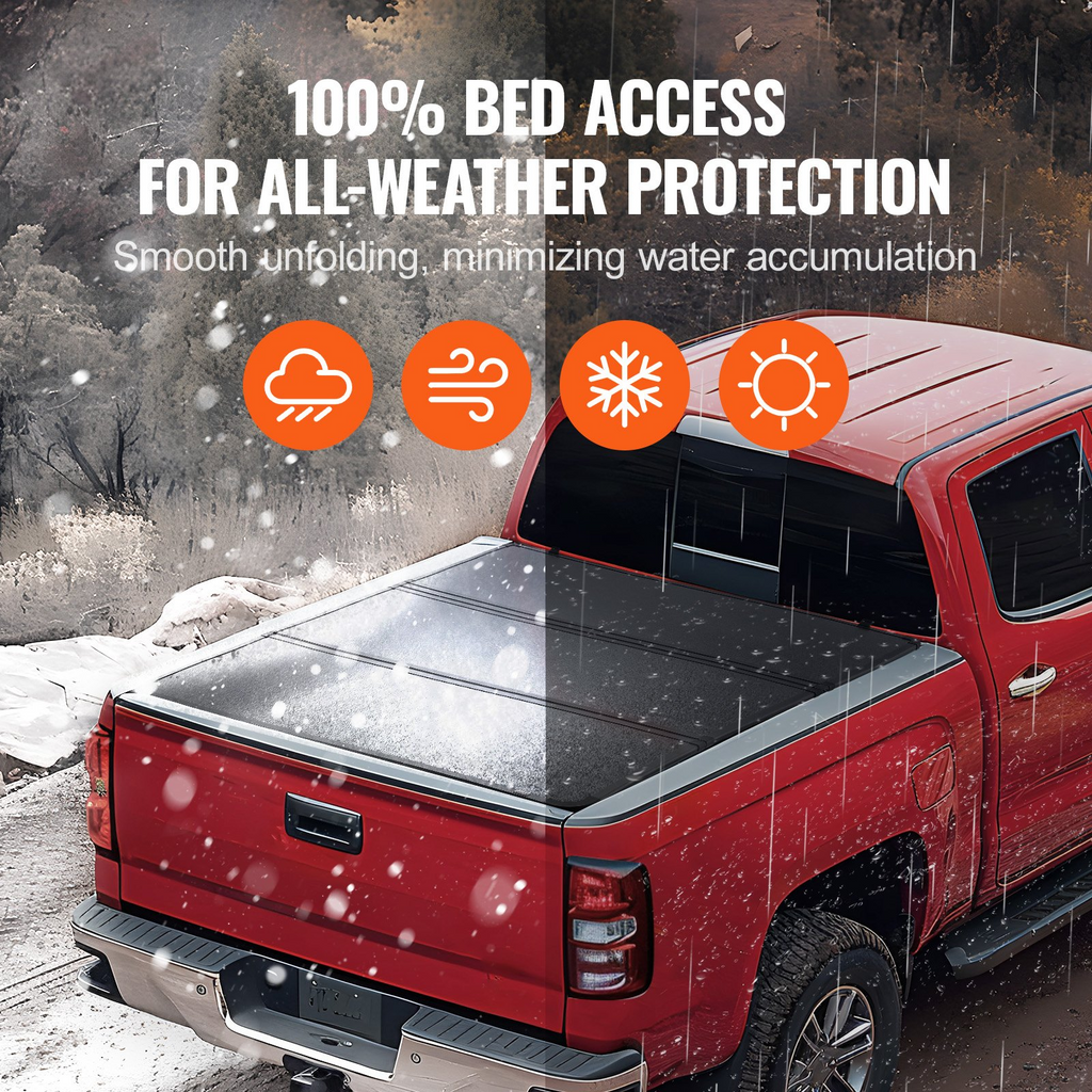 VEVOR - Funda para caja de camioneta plegable en tres partes, compatible con Chevy Silverado GMC Sierra 1500 2019-2024 (NO APTA para modelos Classic 19-24), caja de 5'8", se adapta a una caja interior de 5.8' x 5.3' (70" x 63.3"), capacidad de 400 lb, color negro,