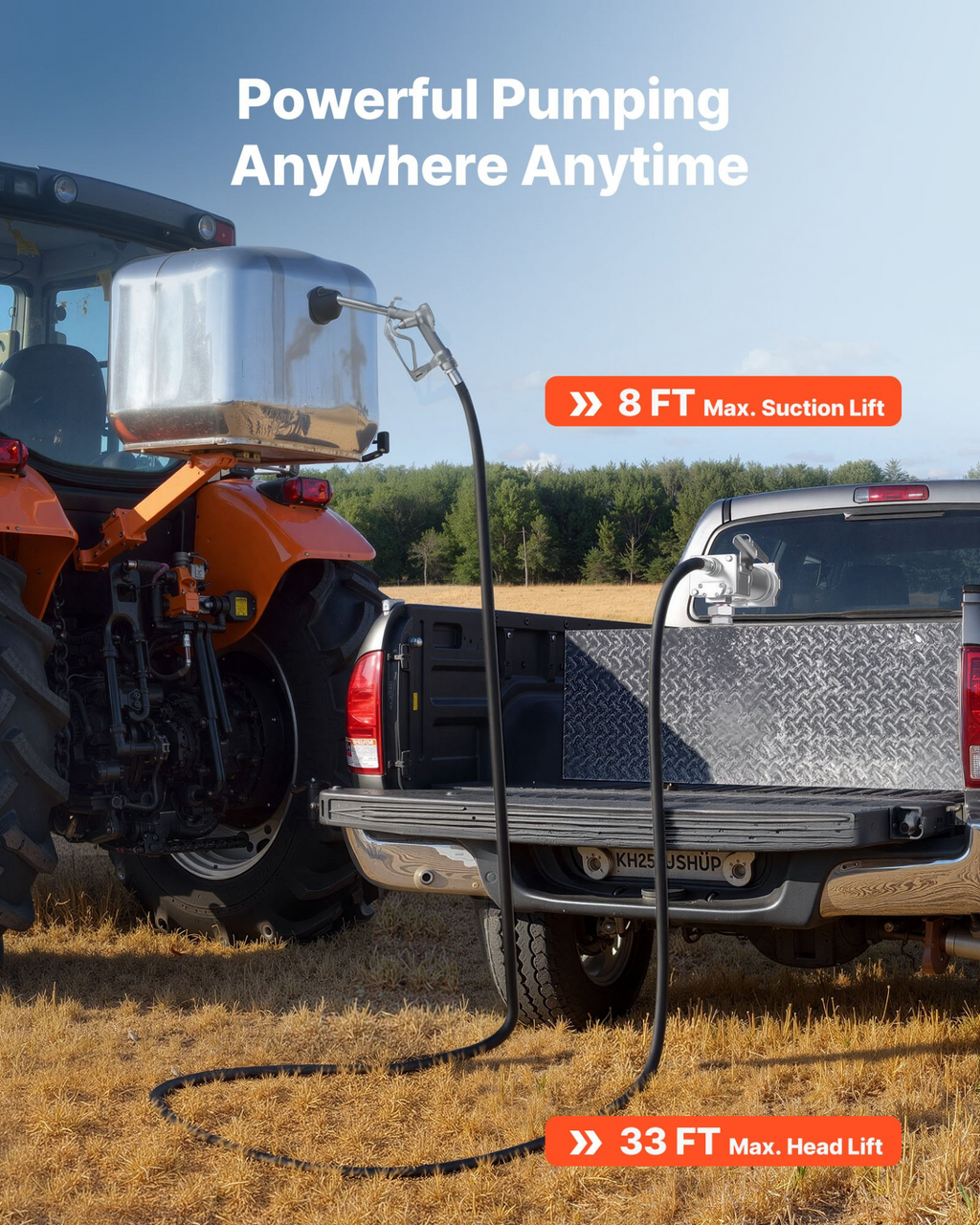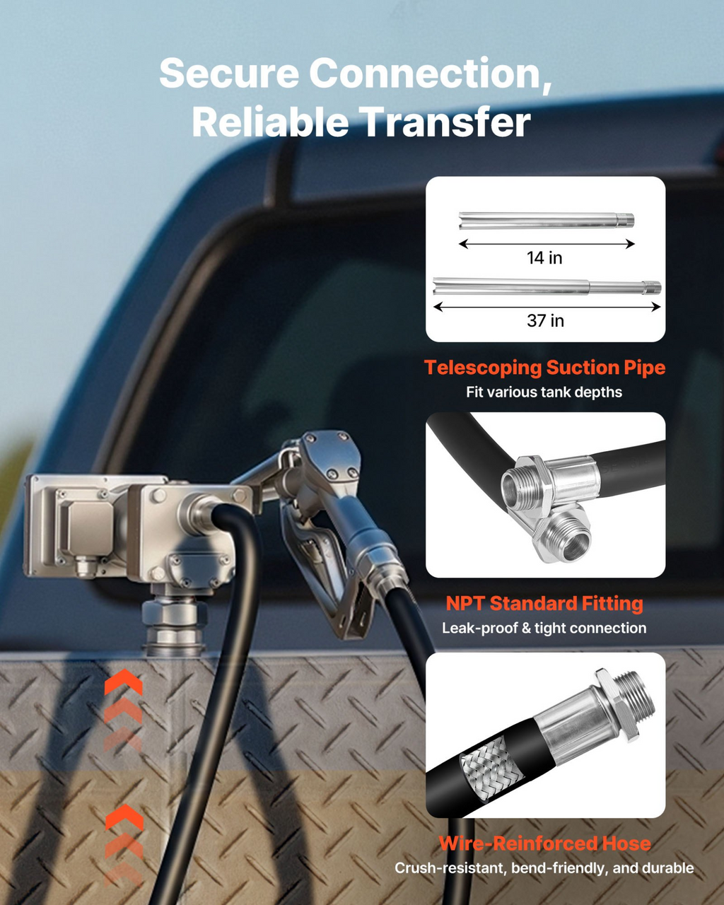 Bomba de transferencia de combustible VEVOR, 12 V CC, 15 GPM, kit de bomba de transferencia de diésel de hierro fundido, con boquilla de cierre manual, manguera de descarga, protección contra sobrecalentamiento, 1/3 HP, a prueba de explosiones, para gasolina, diésel y queroseno.