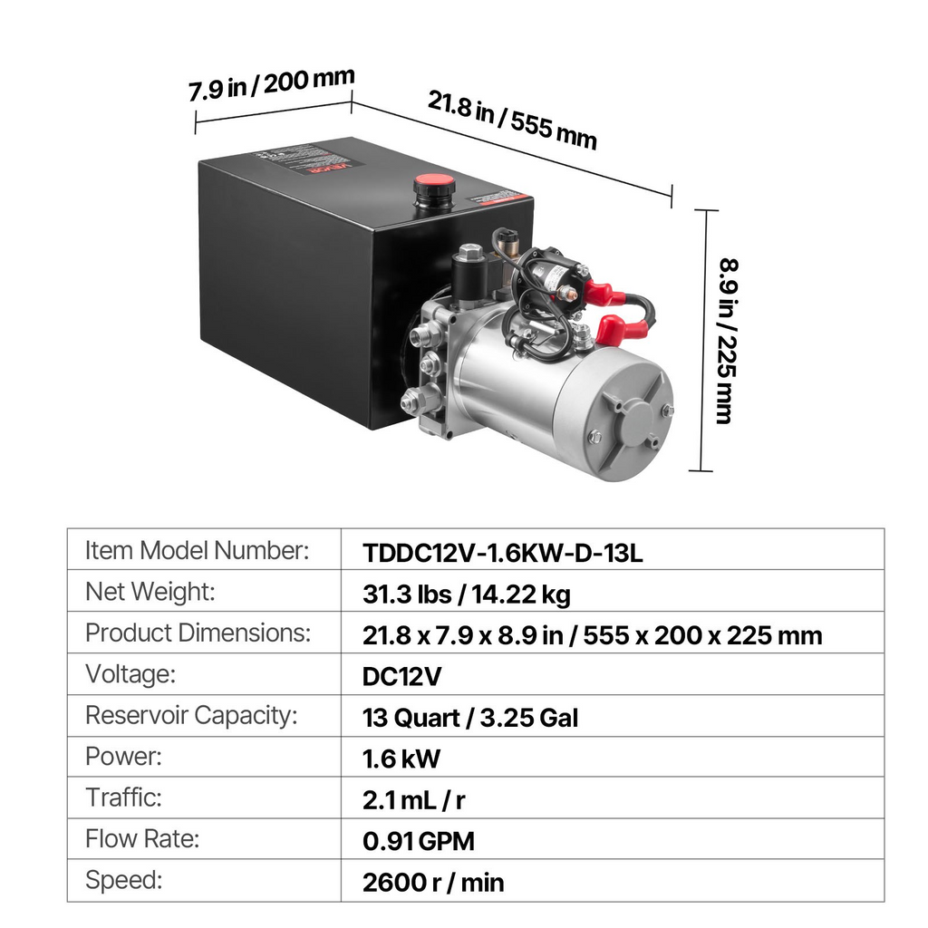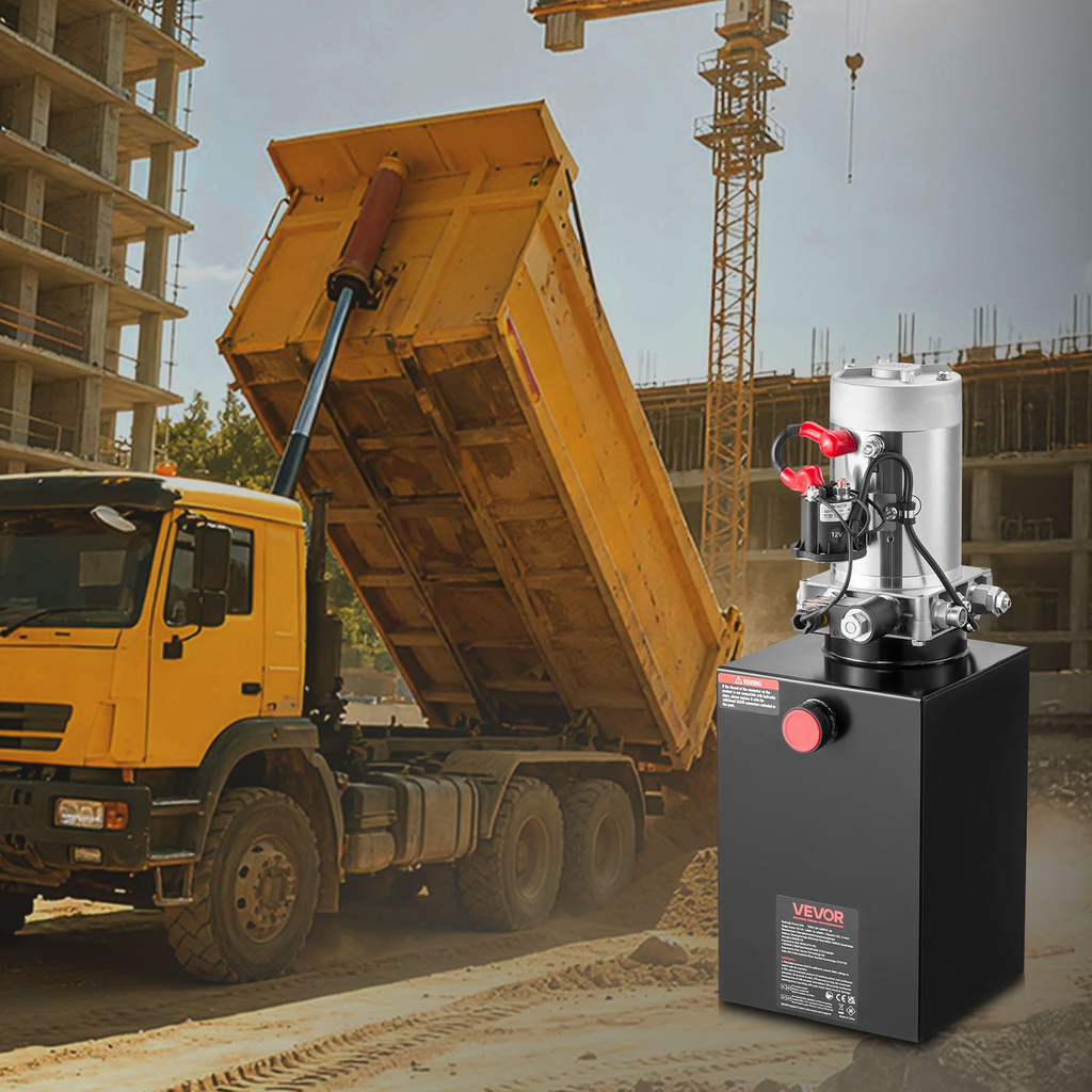 Bomba hidráulica VEVOR de 13 cuartos de galón, de simple efecto, para remolques de volteo, con presión máxima de alivio de 3200 PSI y caudal de 0,91 GPM, de 12 V CC