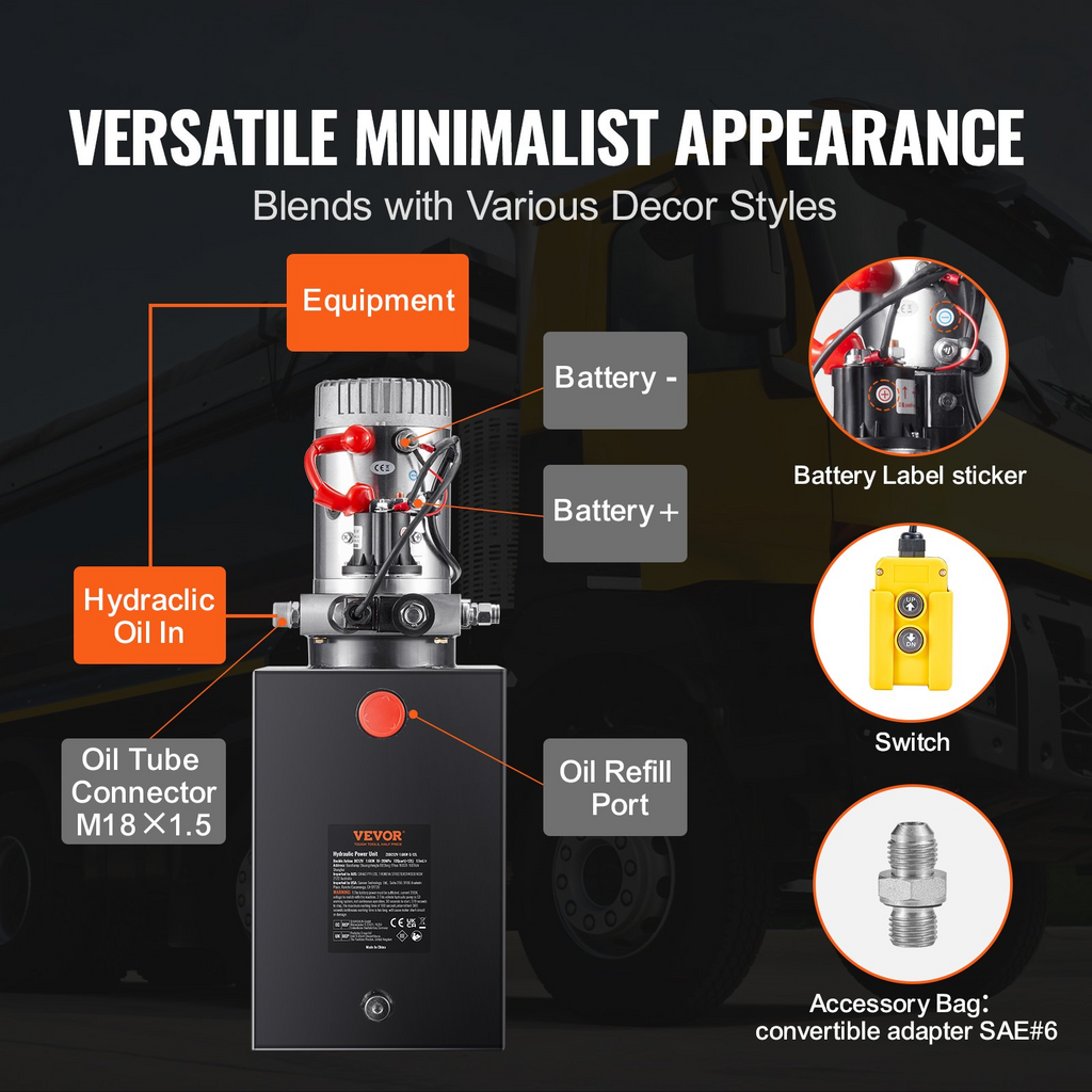 Bomba hidráulica VEVOR, unidad de potencia hidráulica de 12 cuartos, bomba de remolque de volteo de acción simple, caudal de 0,91 GPM, presión de alivio máxima de 3200 PSI, bomba hidráulica de 12 V CC para remolque de volteo, elevación de automóviles,