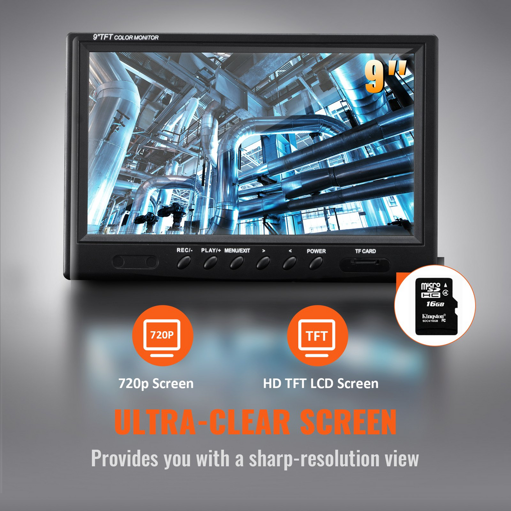 VEVOR Sewer Camera, 165 ft/50 m, 9" Screen Pipeline Inspection Camera with DVR Function, Waterproof IP68 Camera with 12 Adjustable LEDs, with a 16 GB SD Card for Sewer Line, Home, Duct Drain Pipe Plum