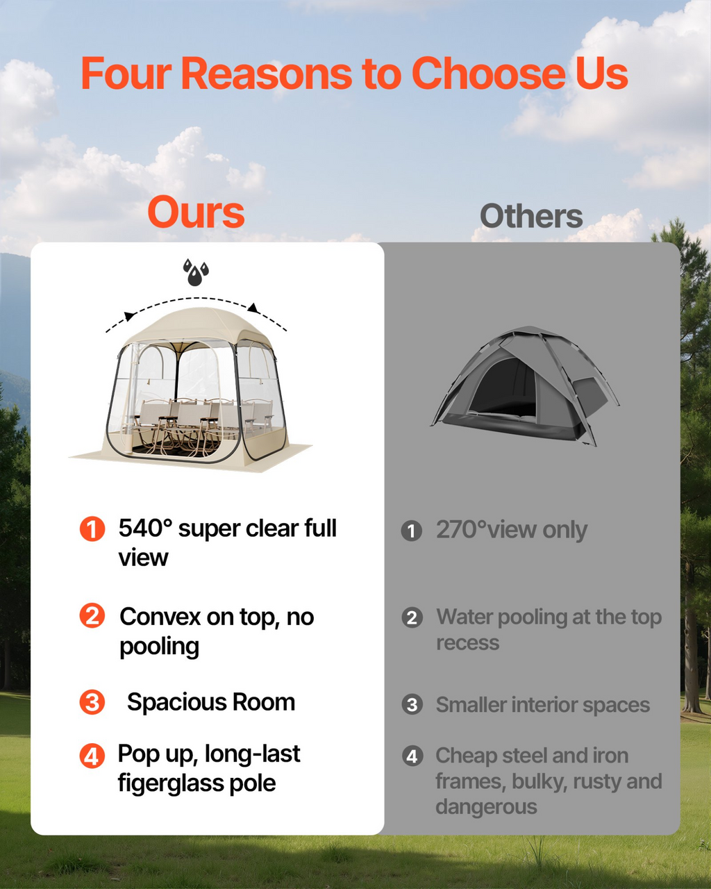 Tienda de campaña deportiva emergente VEVOR, 183 x 183 cm, transparente para 2-4 personas, impermeable con suelo