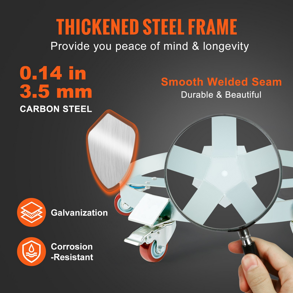 Carro de tambores de alta resistencia VEVOR de 55 galones, capacidad de carga de 1250 libras, carro de tambores, carro de mano antivuelco, carros de capacidad con estructura de acero, 5 ruedas giratorias, para manipulación de tambores en almacén,