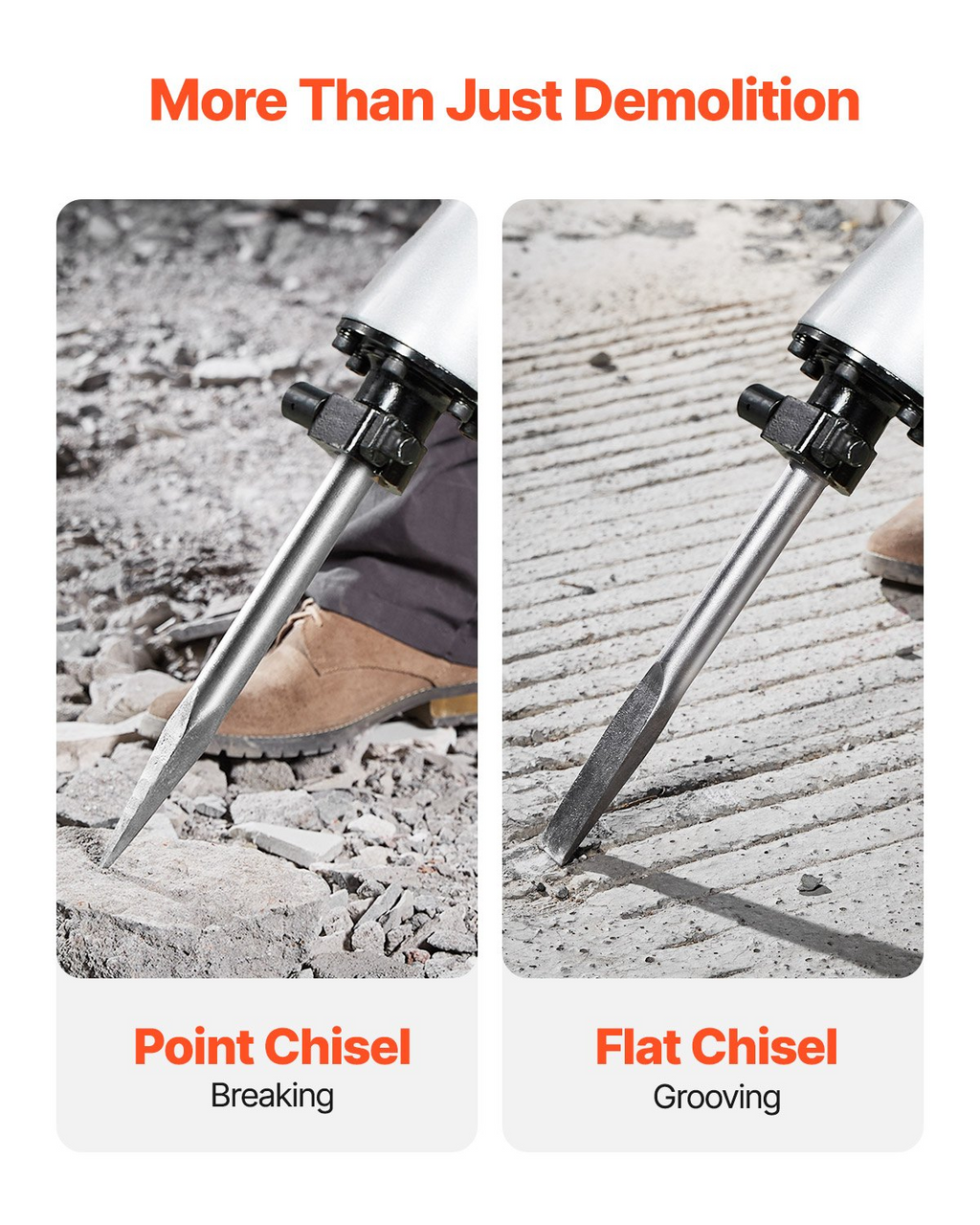 Martillo de demolición VEVOR, potente martillo neumático eléctrico de 2800 W, 1200 BPM, martillo rompedor de hormigón con cincel de punta, cincel plano