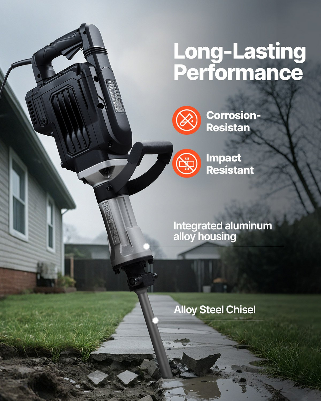 Martillo de demolición VEVOR, potente martillo neumático eléctrico de 3000 W, 1700 BPM, martillo rompedor de hormigón con cincel de punta