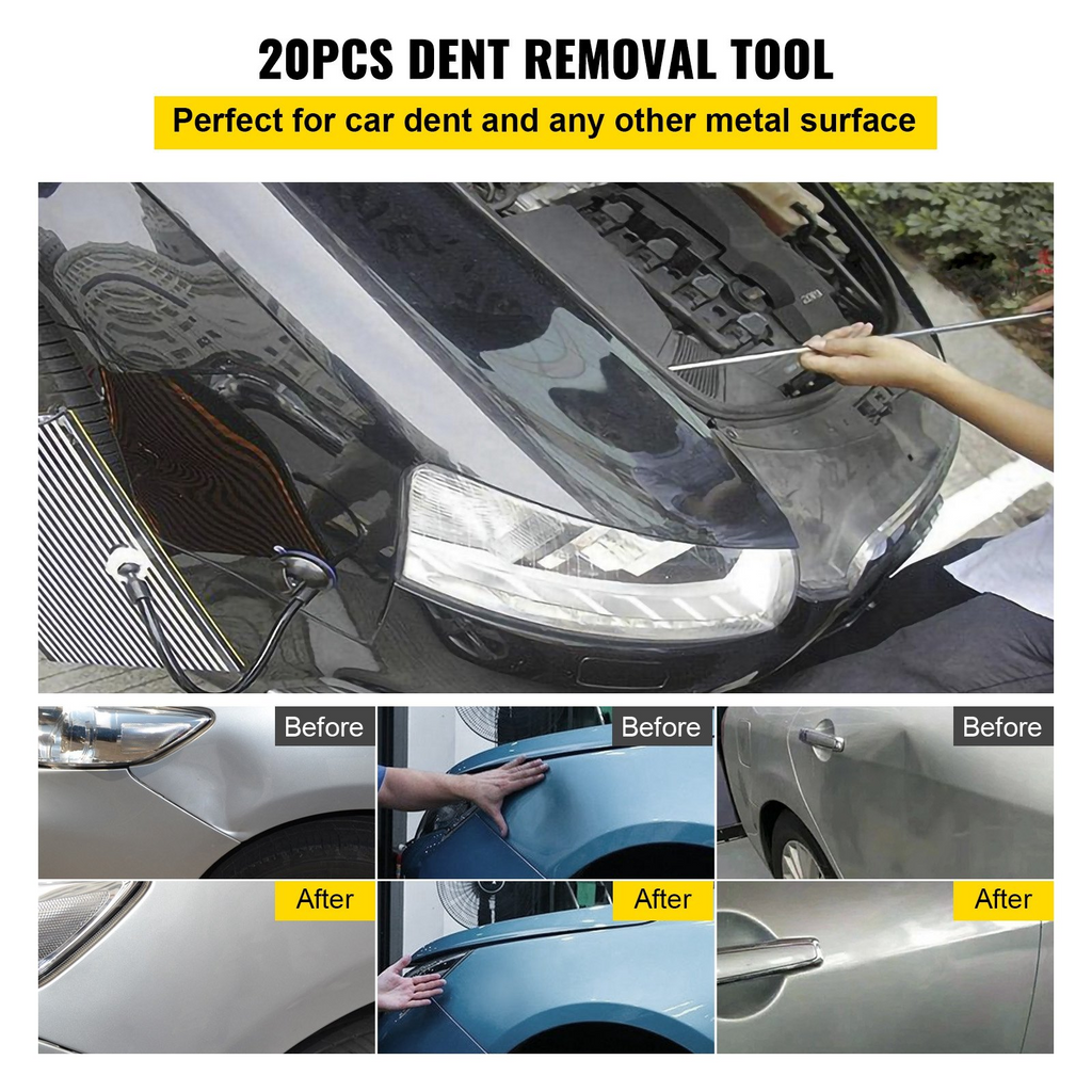 Kit de eliminación de abolladuras VEVOR Rods 20 piezas de varillas de reparación de abolladuras sin pintura