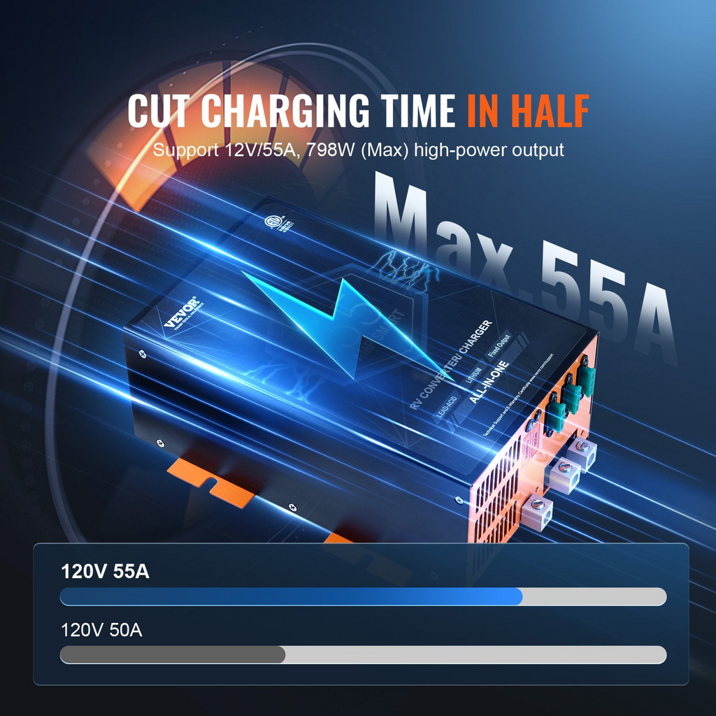 Convertidor de potencia para vehículos recreativos VEVOR de 55 amperios 110 V CA a 12 V CC cargador de batería