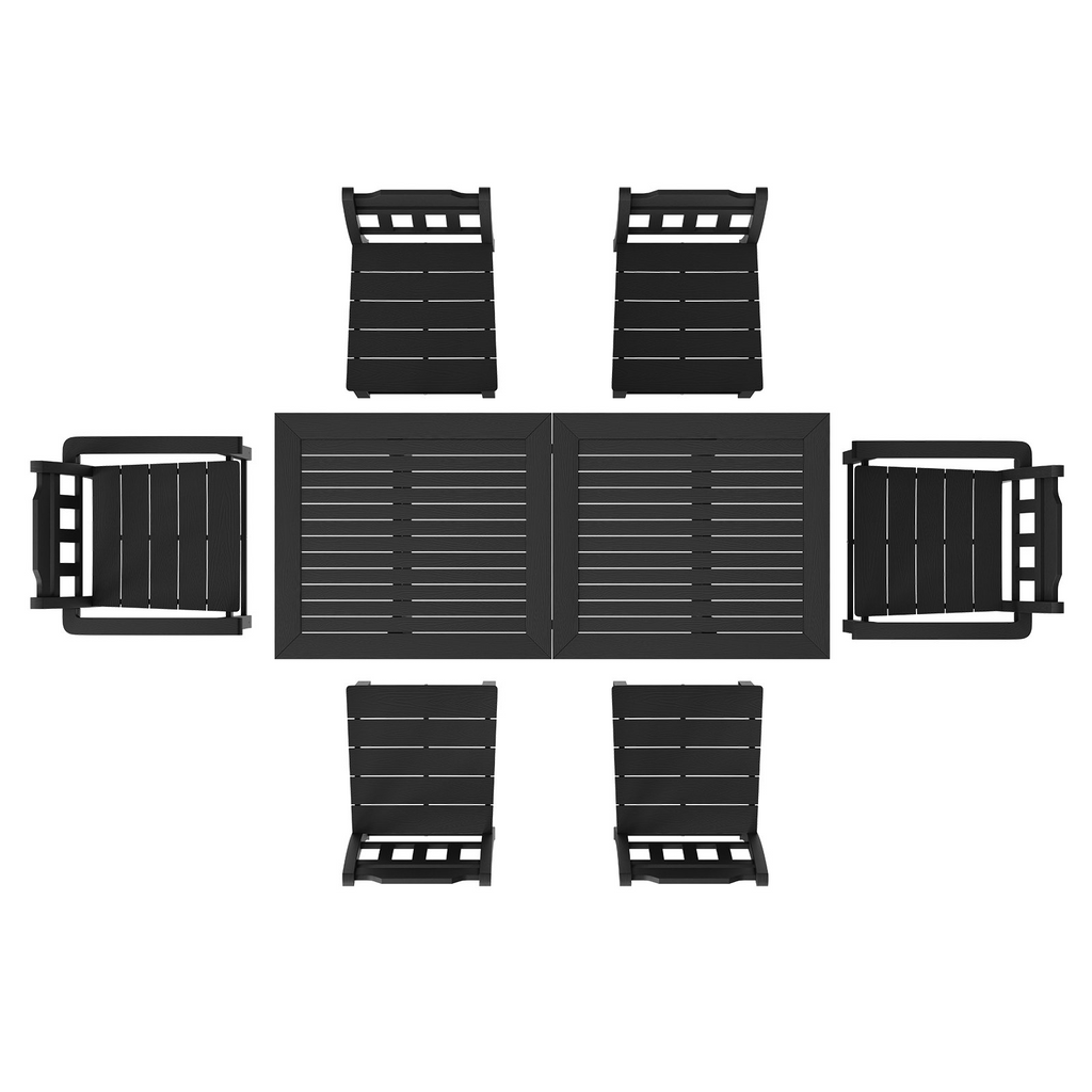 VEVOR Juego de comedor para patio de 7 piezas, juego de mesa y sillas rectangulares para exteriores, juegos de mesa y muebles de jardín para todo tipo de clima, juego de conversación para patio HIPS, para césped, terraza, patio trasero, junto a la piscina, color negro