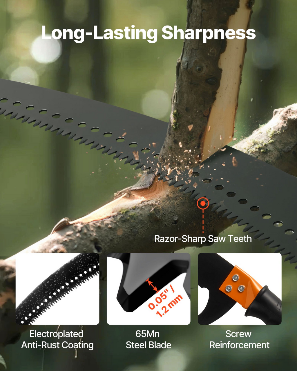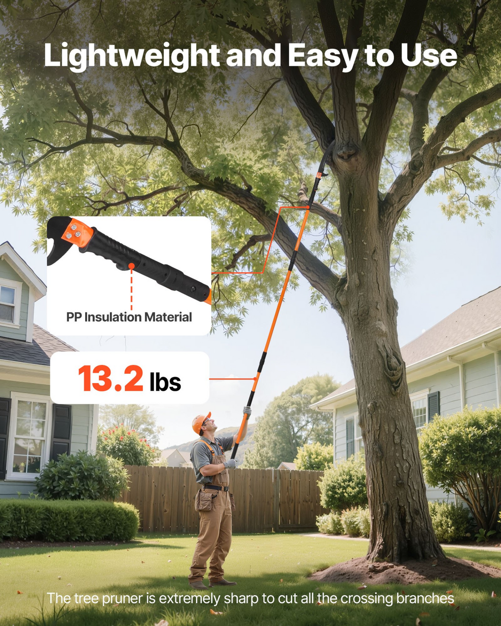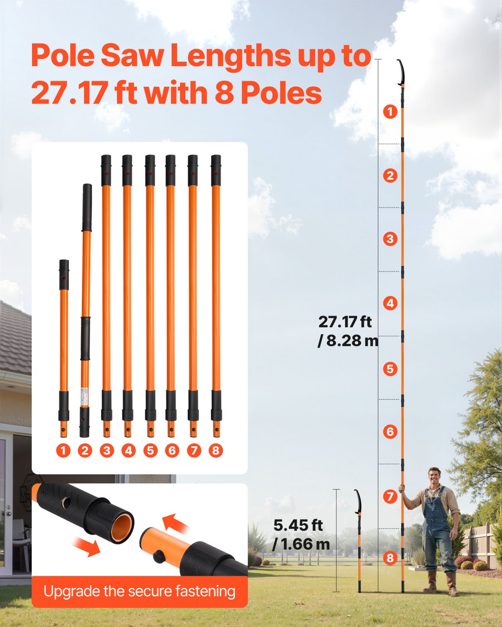 Sierra de pértiga manual VEVOR, podadora de árboles extensible de 1,37 a 8 m, hoja afilada de acero de 65 Mn, mango ligero de fibra de vidrio