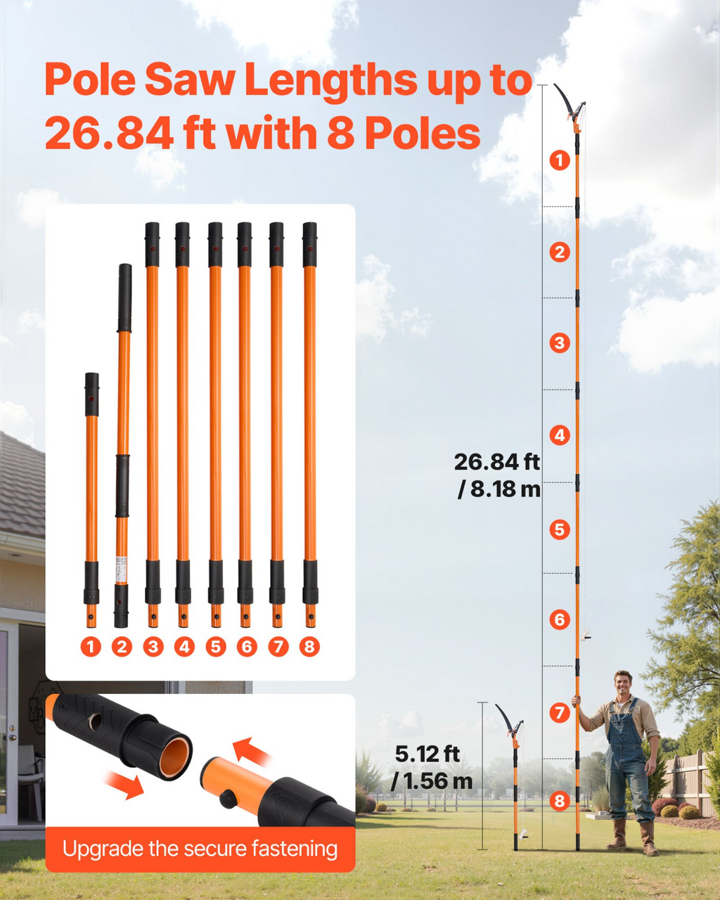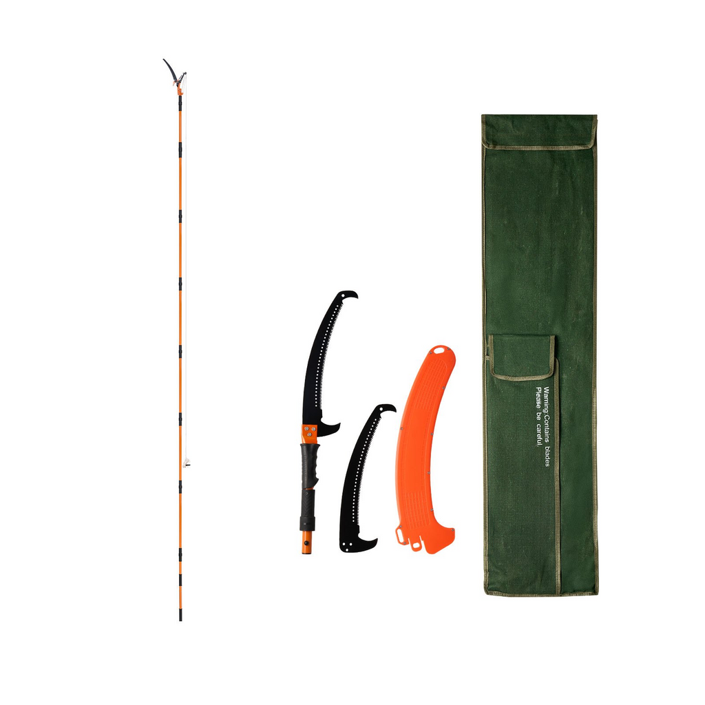 Sierra de pértiga manual VEVOR, podadora de árboles extensible de 1,3 a 8 m con tijeras, hoja afilada de acero de 65 Mn, mango ligero de fibra de vidrio