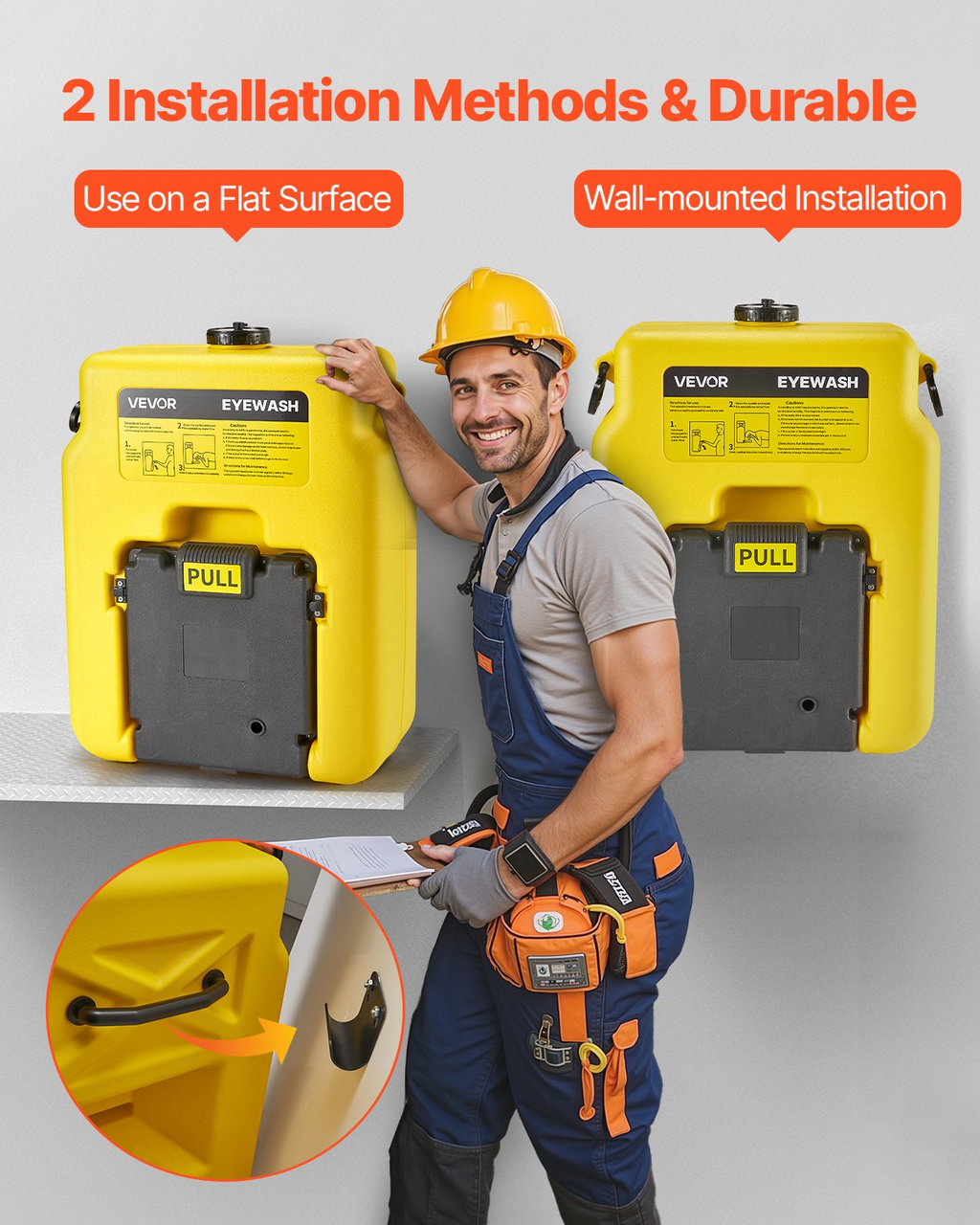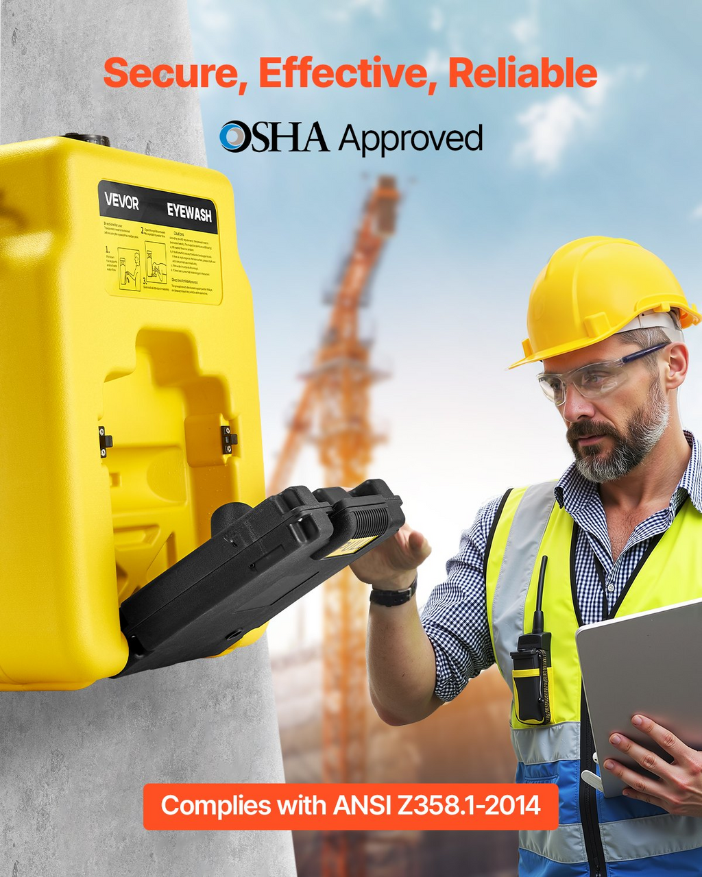 Lavaojos portátil VEVOR de 14 galones, aprobado por OSHA, para pared o superficie plana, con 2 pulverizadores, para emergencias