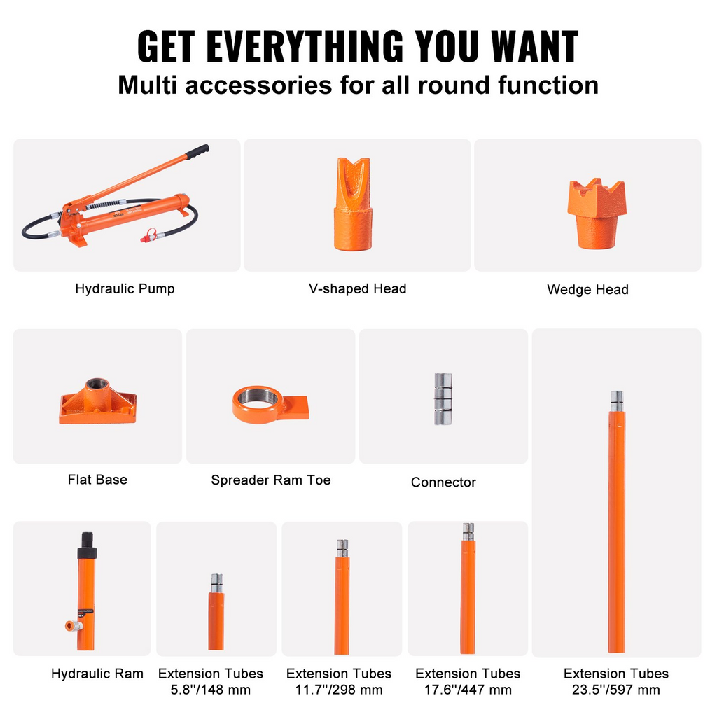 Kit de potencia portátil VEVOR de 20 toneladas, gato hidráulico portátil con manguera de aceite de 1,4 m, herramienta de reparación de chasis de coche con estuche para automoción, maquinaria pesada y mecánica (20.000 kg).