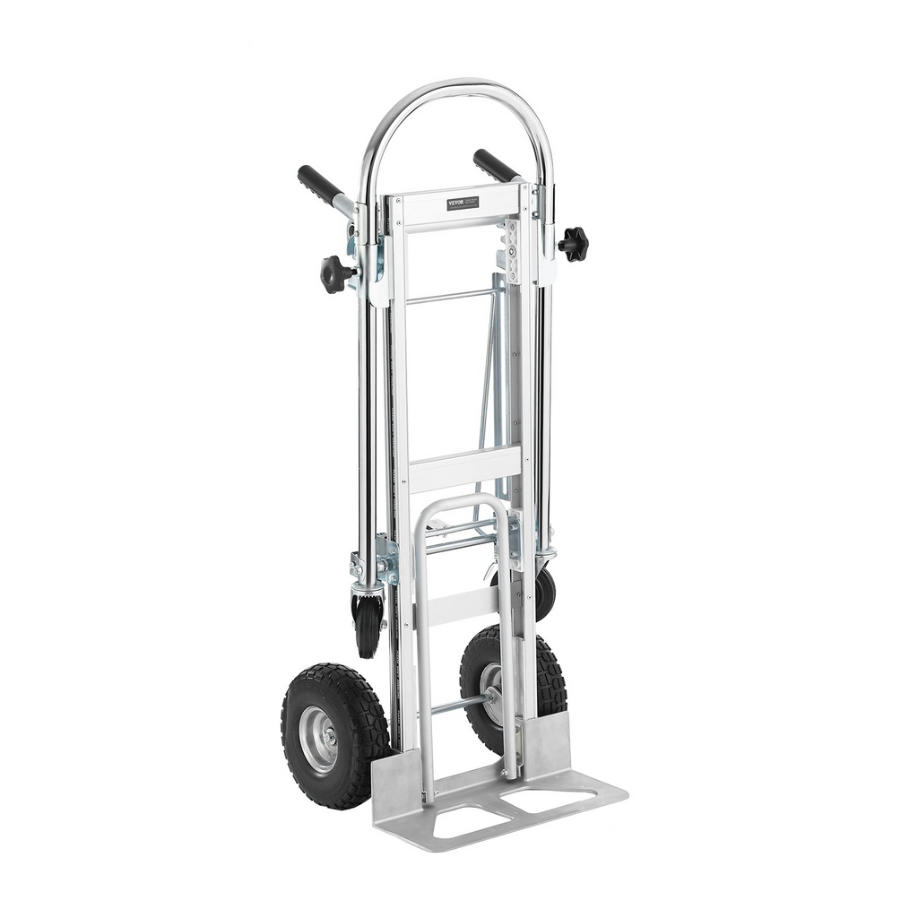 VEVOR Carretilla de mano plegable de aluminio, diseño 4 en 1, capacidad de 1000 libras, carrito industrial plegable de alta resistencia, carrito con ruedas de goma para transporte y movimiento en almacén, supermercado, jardín