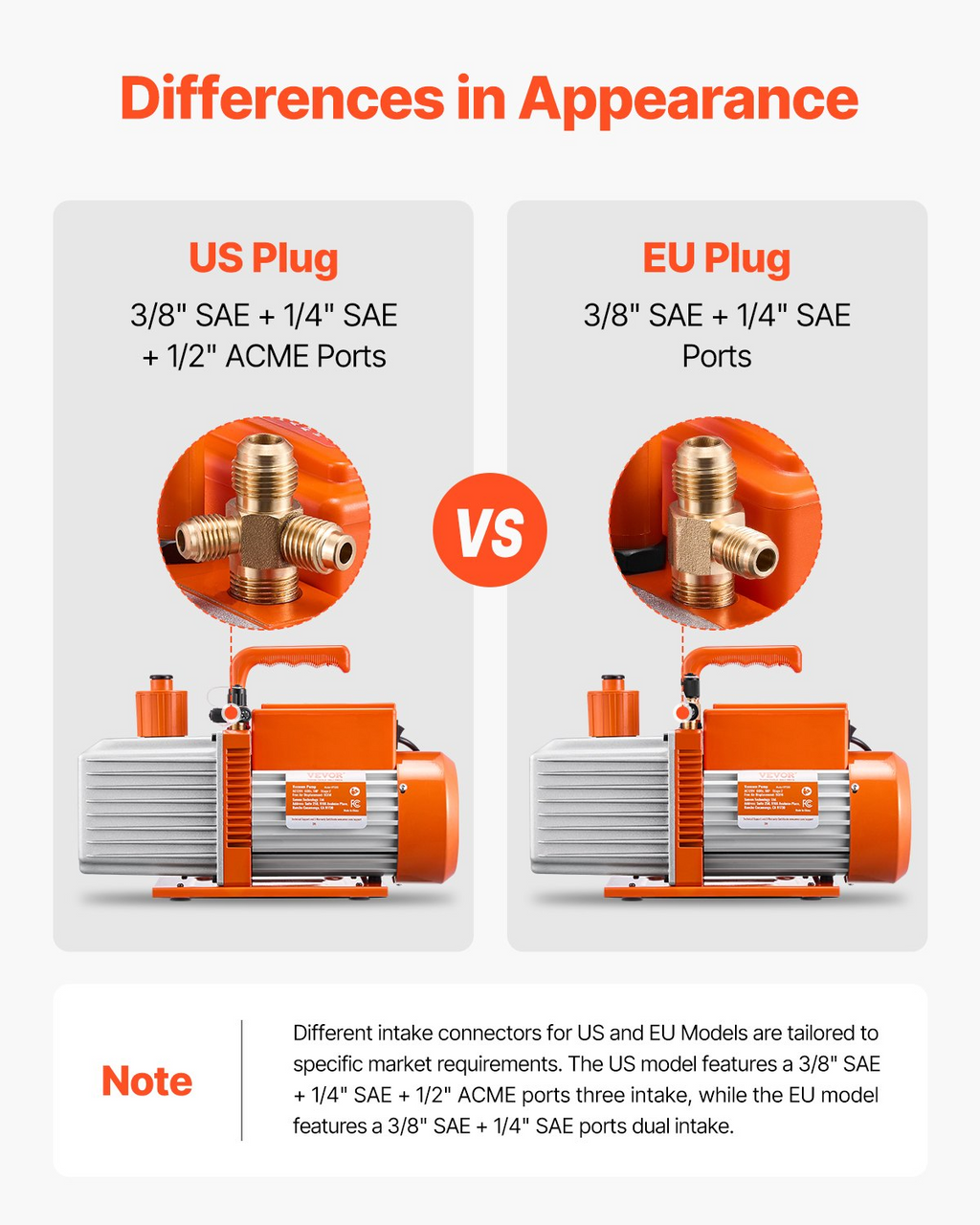 Bomba de vacío VEVOR, 9 CFM, bomba de vacío de paletas rotativas de 2 etapas para HVAC, para sistemas R134a, R22 y R410a