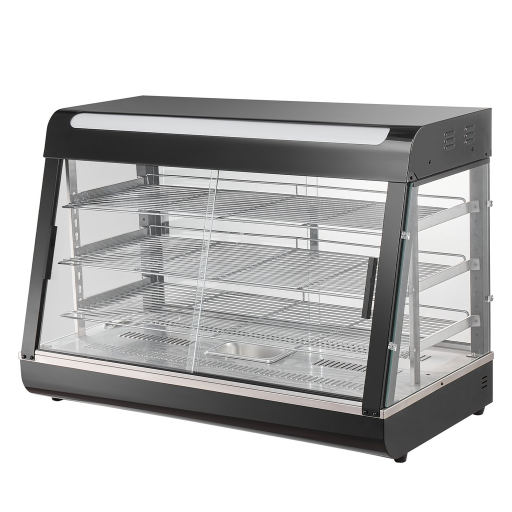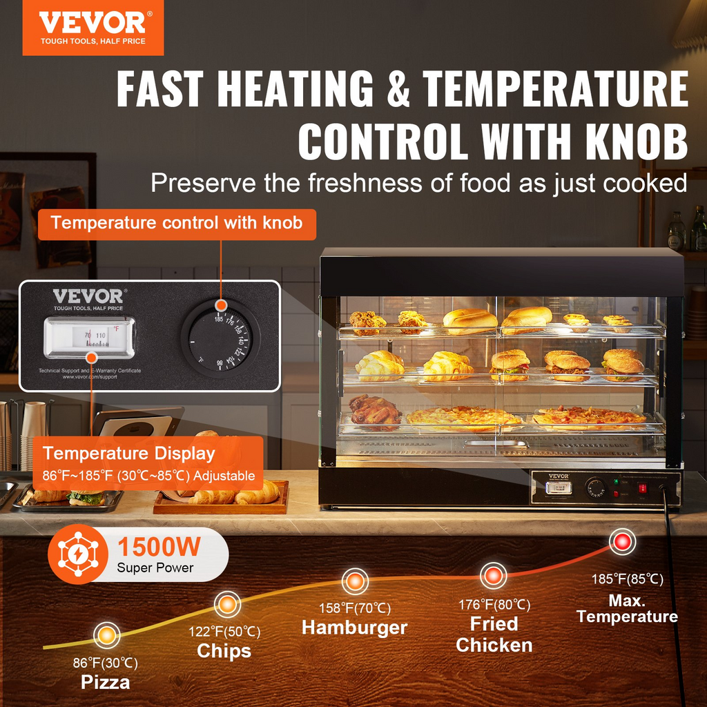 Vitrina para pizza con luz para mostrador con calentador de alimentos comercial de 3 niveles VEVOR