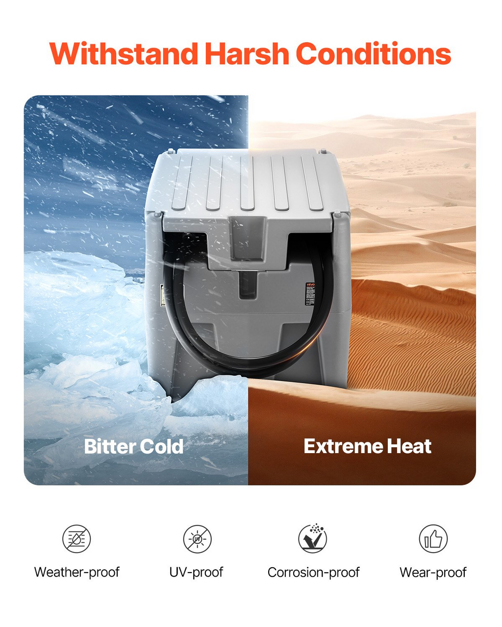 Tanque diésel portátil VEVOR, capacidad de 58 galones y caudal de 10 GPM, tanque de combustible con bomba de transferencia eléctrica de 12 V y manguera de goma de 13.1 pies, tanques de transferencia diésel de PE para facilitar el transporte de combustible,