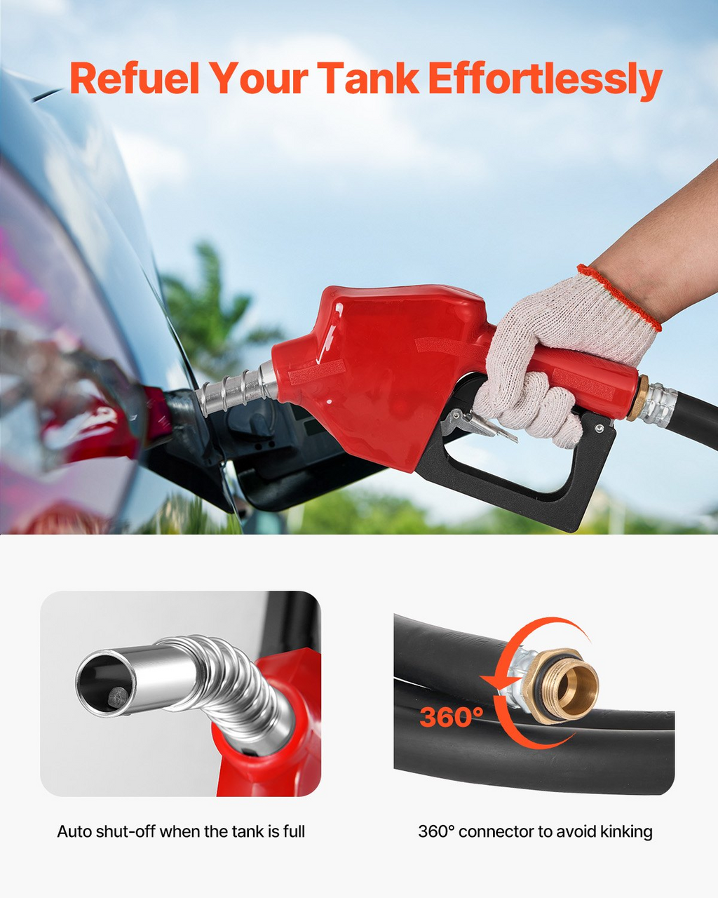 , color de la tapa del tanque: gris, válvula de ventilación: tapa de tanque combinada y válvula de ventilación, color: gris, características de la pistola de combustible: bloqueo automático de 3 etapas, sensor autosellante, dimensiones del producto: 800 x 630 x 640 mm (31.5 x 24.8 x 25.2 in), peso: peso neto: 28.2 kg / 62.2 lbs, tipo de combustible: diésel, incluye: medidor de combustible, filtro, junta giratoria de 360°, función de parada automática, caudal: 10.6 galones / minuto, capacidad del tanque: 58 galones / 220L, Velocidad del motor: 2800 RPM, Material del cuerpo: LLDPE, Potencia nominal de la bomba: 140 W, Cable de alimentación: VDE 2x2,5 mm², Longitud: 13 pies / 3,9 m, Número de modelo del artículo: YDIES200L-EF, Especificaciones de la pistola de combustible: Rosca interna de 3/4 de pulgada, Clave del indicador de nivel: E, 1/4, 1/2, 3/4, F, Manguera de aceite: 3/4 de pulgada de diámetro, Longitud: 13 pies / 4 m, Voltaje de entrada de la bomba: DC12V
