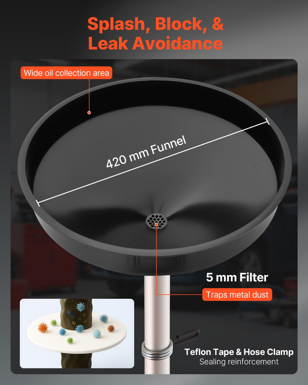VEVOR Tanque de drenaje de aceite usado de 18 galones, tanque de drenaje de fluidos industriales con embudo de altura ajustable
