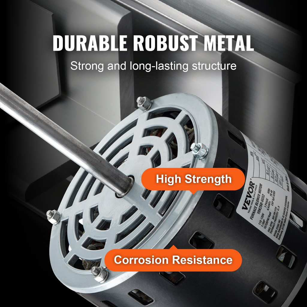Motor de soplador de horno VEVOR de 1/3 HP, 110/120 V, 4,4 A, 1075 RPM, 4 velocidades, rotación CW/CCW, marco de 48 pulgadas, longitud del eje de 5,2 pulgadas, condensador de 5 μF/370 V + aro de retención