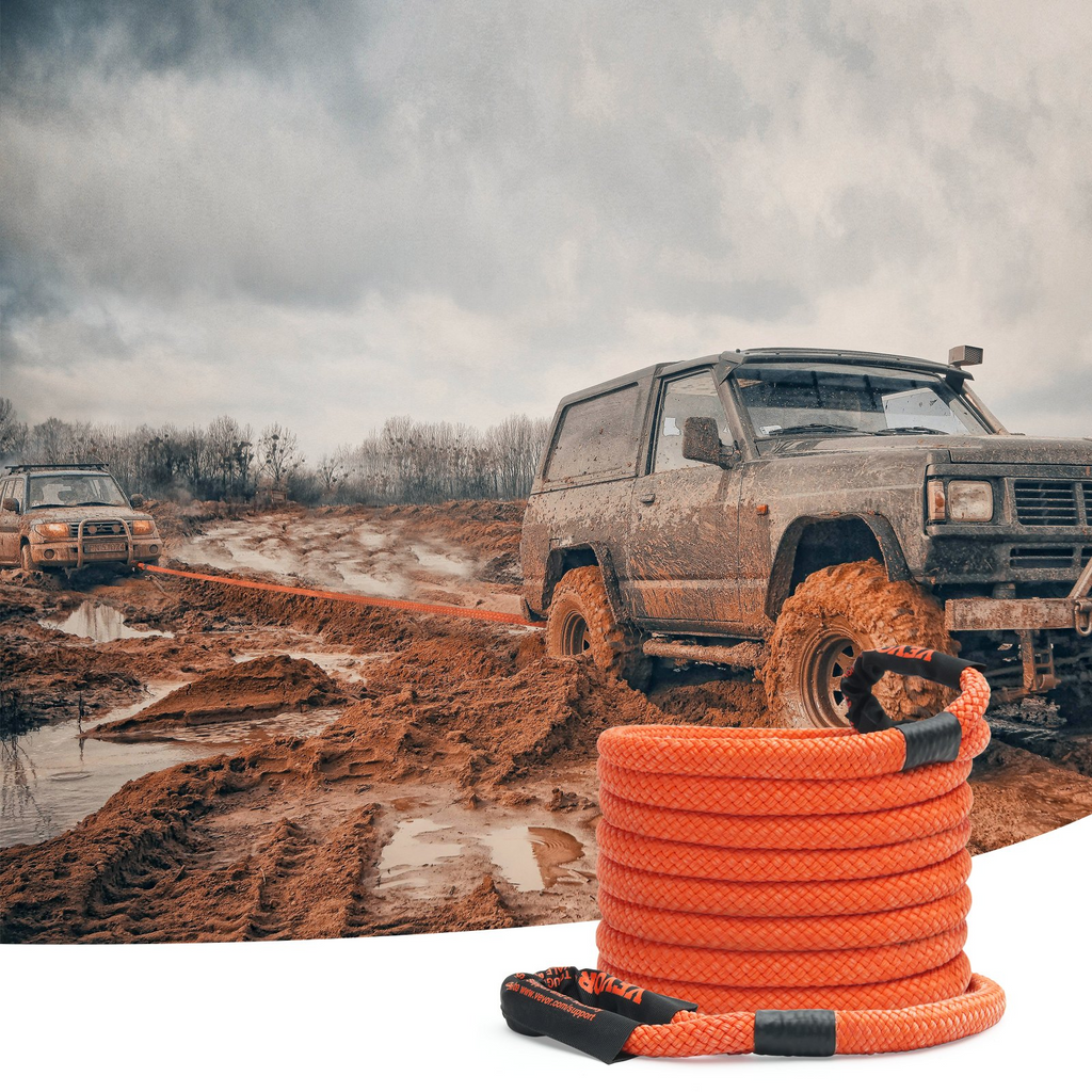 VEVOR Cuerda de remolque de recuperación cinética de 1" x 30', 38 000 lb, correa de remolque todoterreno de alta resistencia, correa de remolque de energía de elasticidad extrema del 30 % para Jeep, camión, ATV, UTV, SUV, tractor Detalles reforzados de