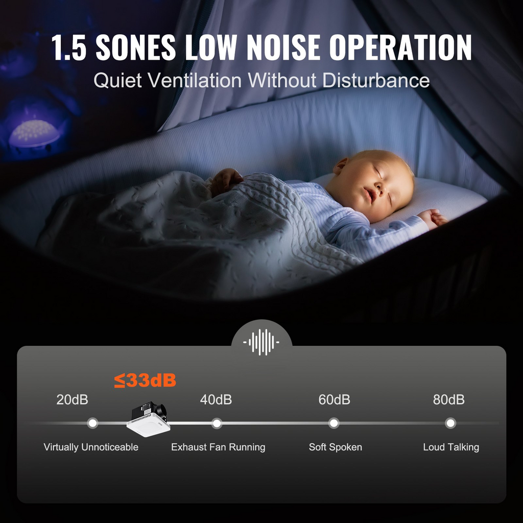 VEVOR Ventilador de baño, 110 CFM Ventilación de alta eficiencia, 1.5 sones Funcionamiento silencioso Motor totalmente de cobre Ventilador de techo para baño que ahorra energía, Necesidad de acceso al ático, Para varios techos