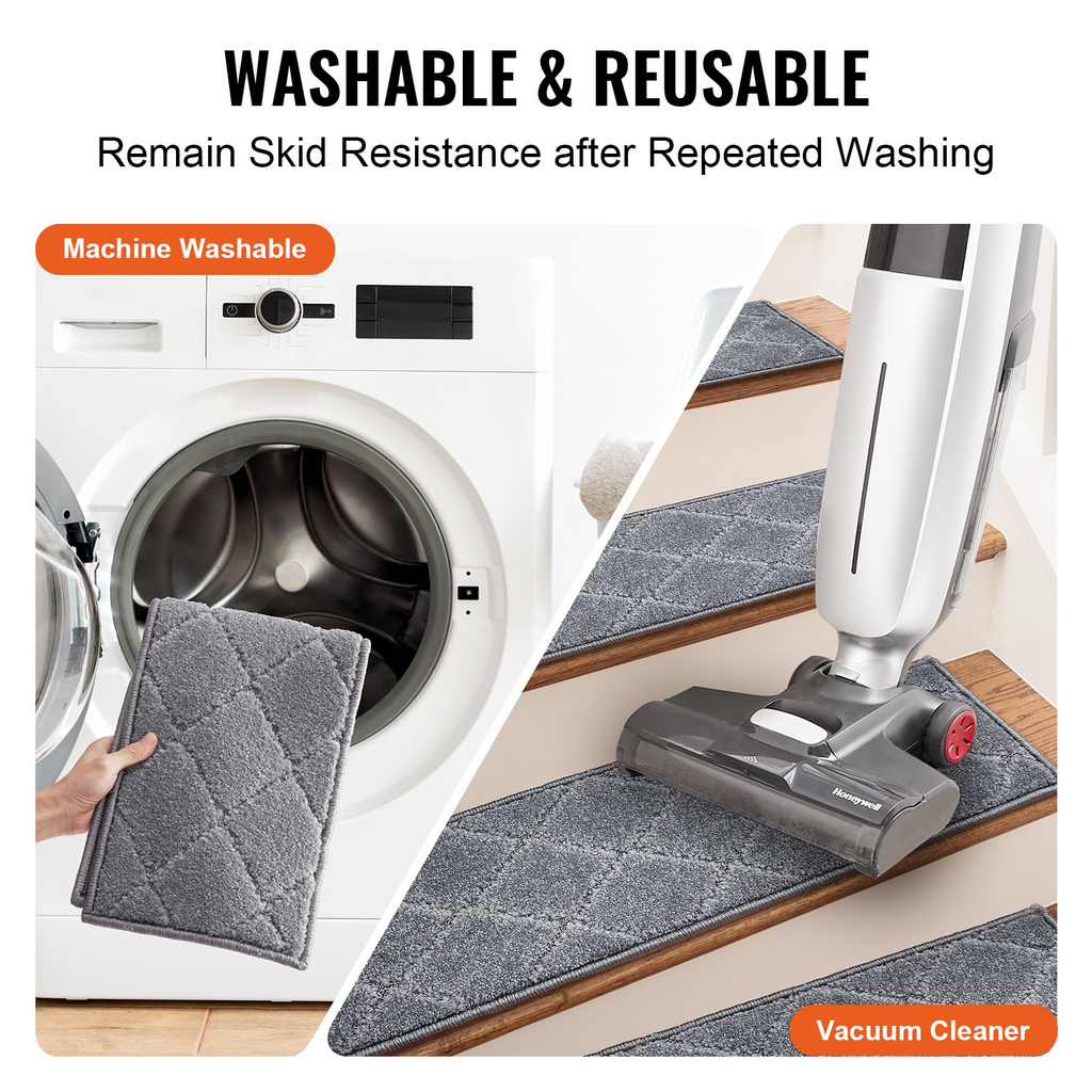 VEVOR Alfombras para escaleras, alfombras antideslizantes para escaleras de 23 x 71 cm, para interiores, para escalones de madera, antideslizantes, con bordes suaves, para niños, ancianos y perros, 15 unidades, color gris,