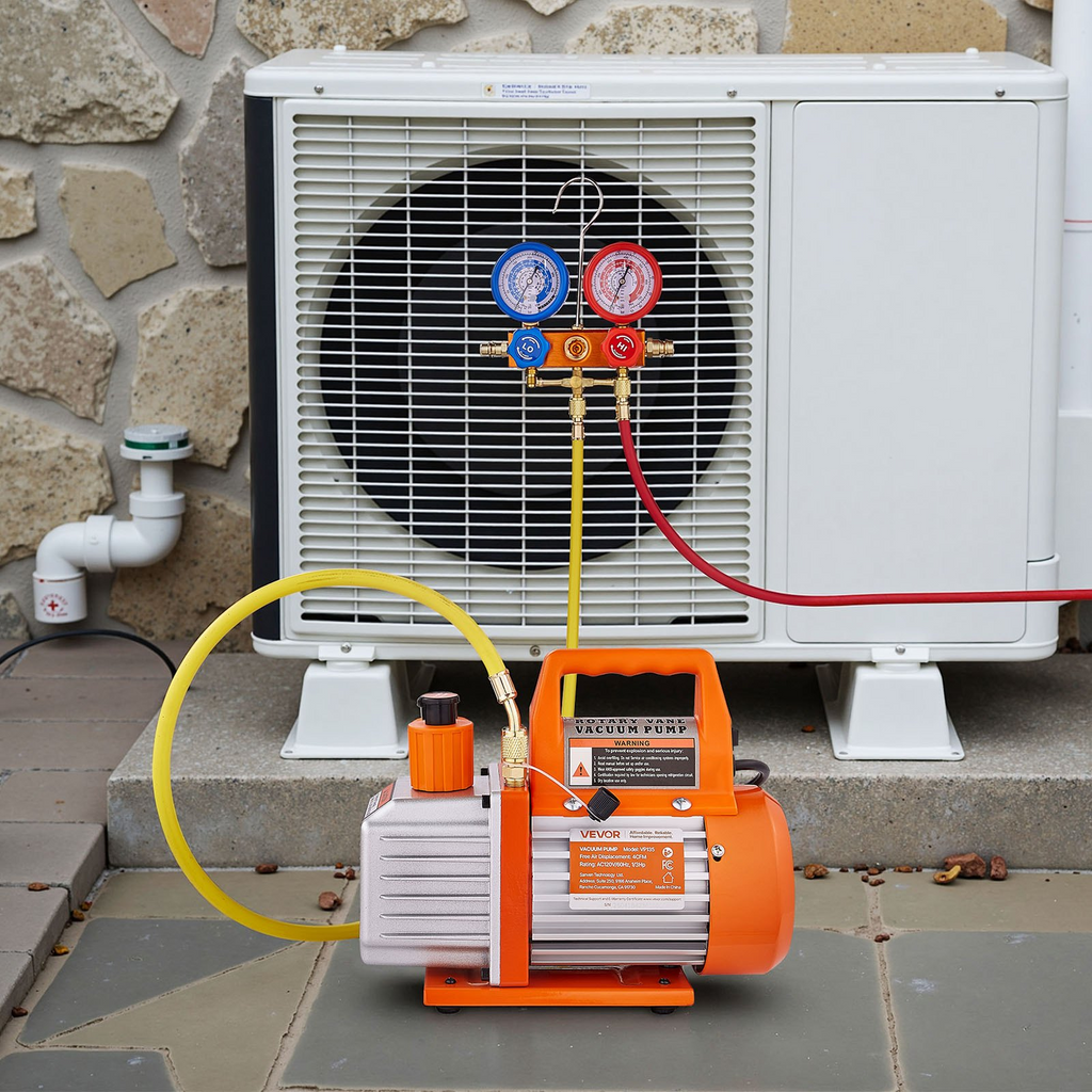 Bomba de vacío y manómetro VEVOR de 4 CFM para aire acondicionado, 1/3 HP, bomba de vacío de aire de paletas rotativas de una etapa para HVAC