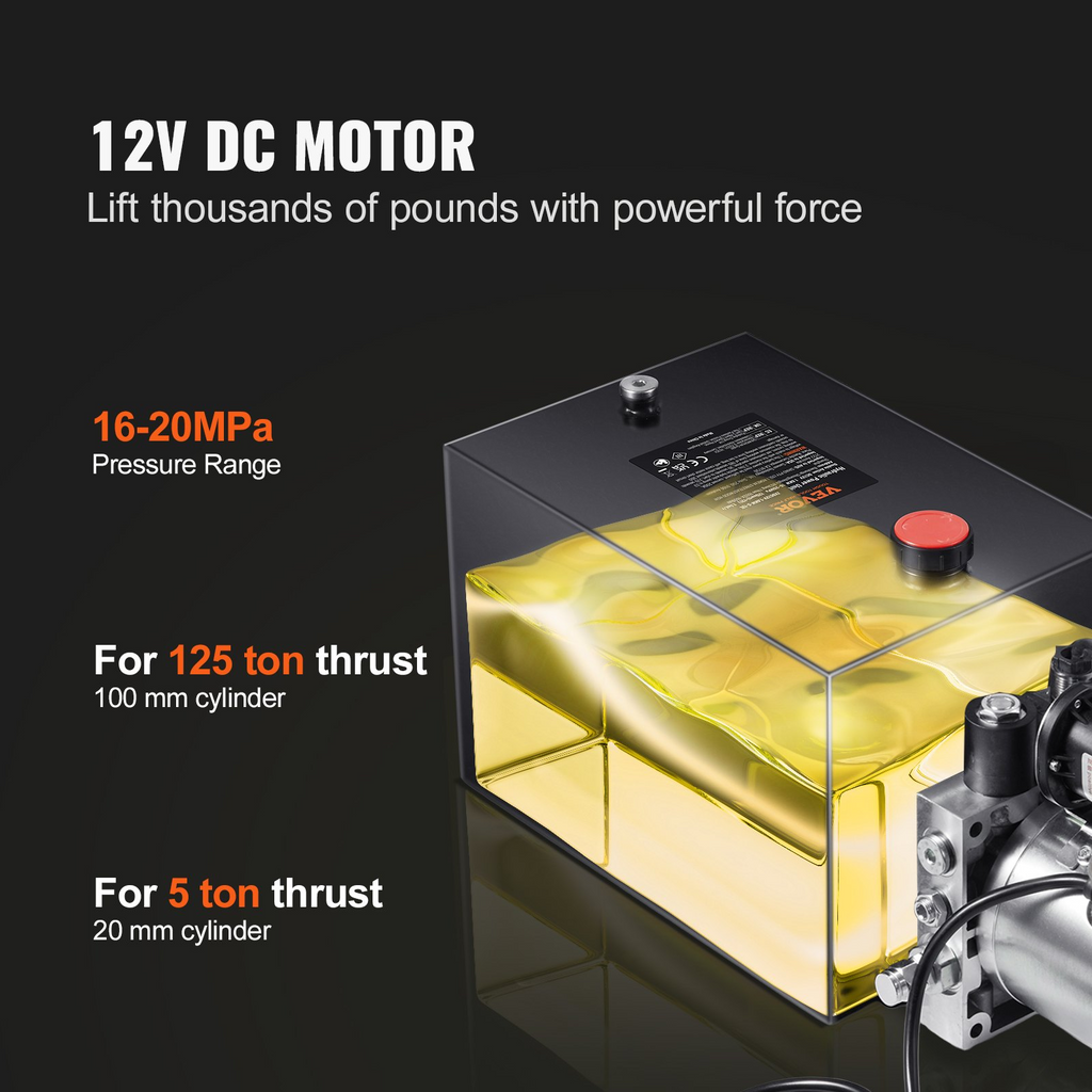 Bomba hidráulica VEVOR, unidad de potencia hidráulica de 4 cuartos, bomba de remolque de volteo de acción simple, caudal de 0,91 GPM, presión de alivio máxima de 3200 PSI, bomba hidráulica de 12 V CC para remolque de volteo, elevación de automóviles,
