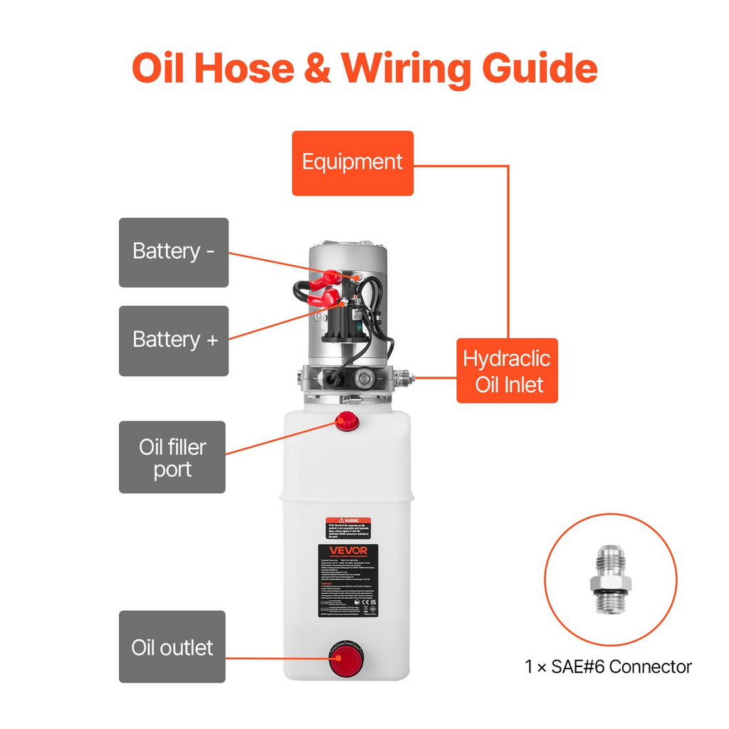 Bomba hidráulica VEVOR de 6 cuartos de galón, de simple efecto, para remolques de volteo, con presión máxima de alivio de 3200 PSI y caudal de 0,91 GPM
