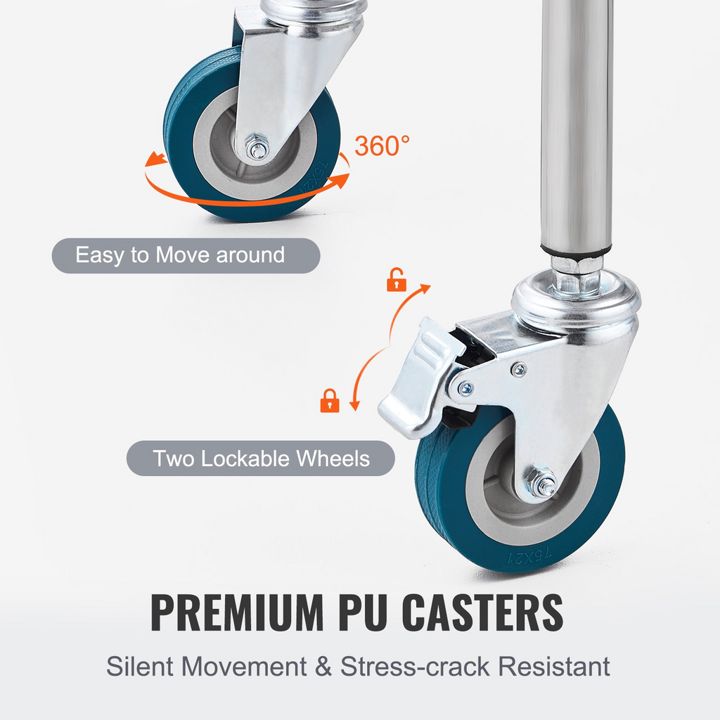 Carro de laboratorio VEVOR con ruedas, de acero inoxidable, con 2 estantes, para servicio de laboratorio con ruedas giratorias, ideal para clínicas, laboratorios