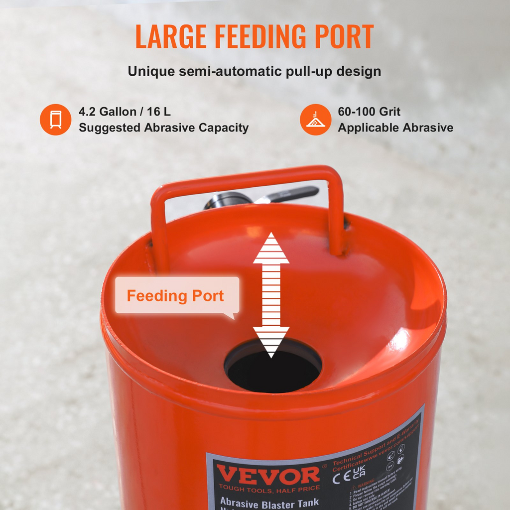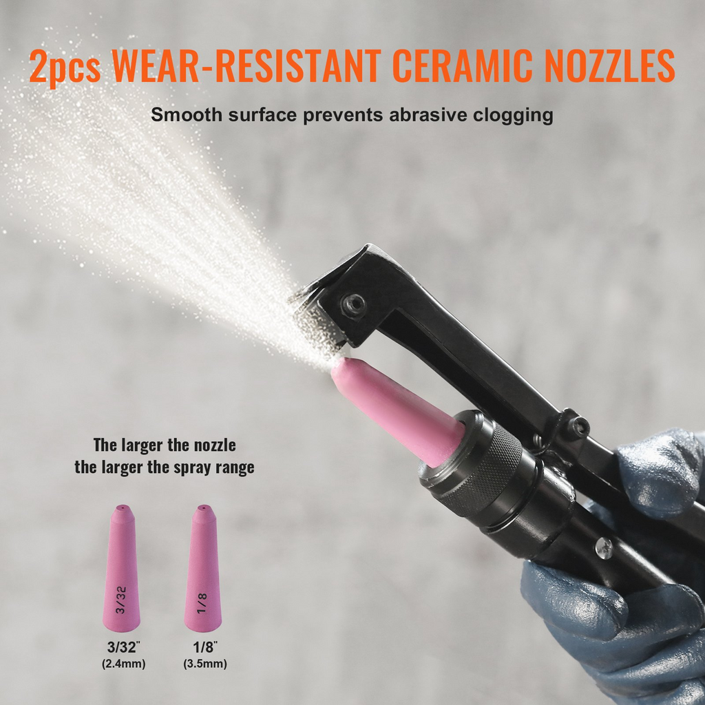 VEVOR Chorro de arena de alta resistencia de 10 galones, chorro de arena de alta presión de 60-110 PSI, tanque de chorro abrasivo portátil, kit de chorro de arena de aire con 2 boquillas de cerámica y manguera de 7.5 pies para eliminación de manchas, óxido y pintura