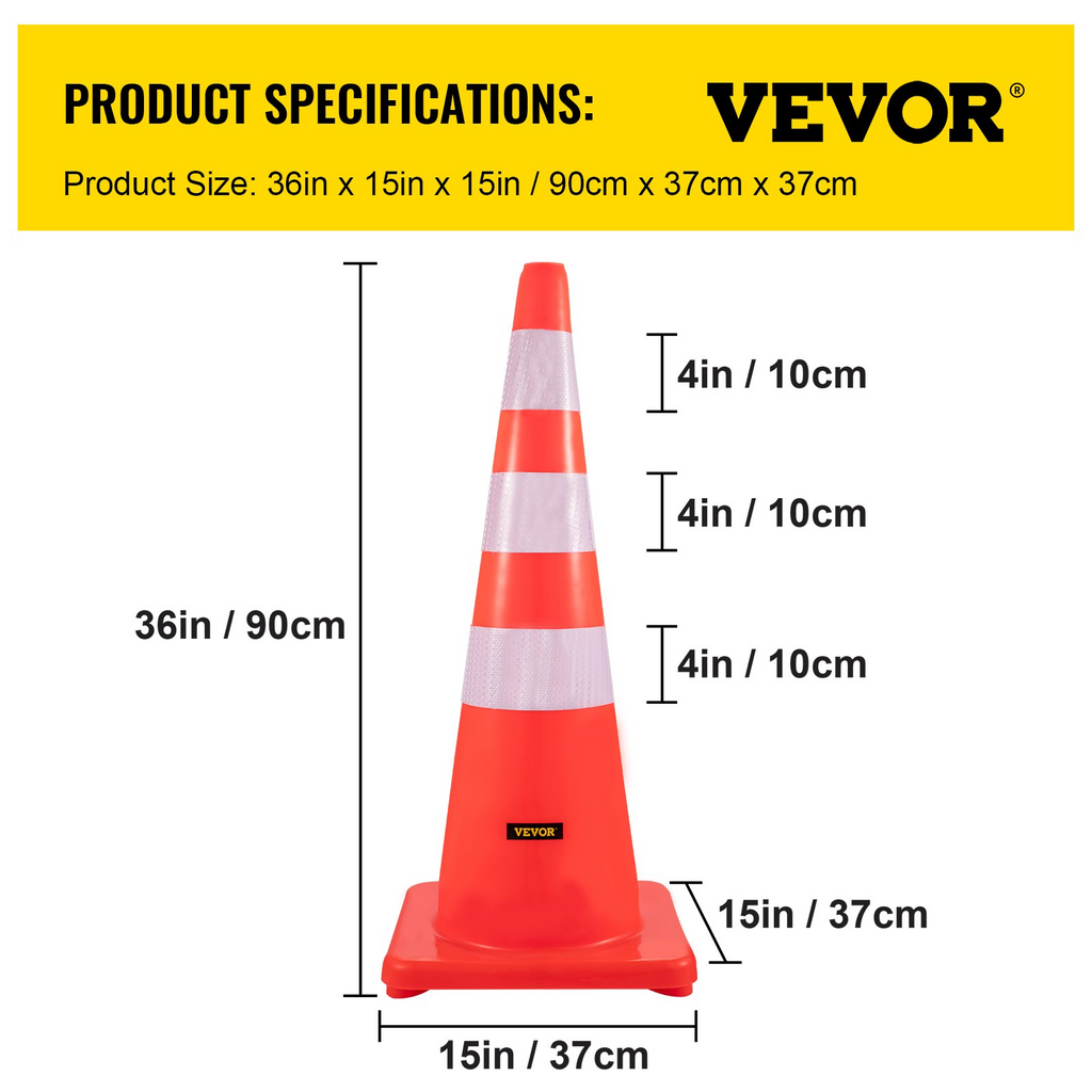 Conos de seguridad VEVOR, 6 conos de tráfico de 91 cm (36"), conos de construcción de PVC naranja, collares reflectantes con base con peso para control de tráfico, estacionamiento en entradas y mejora de escuelas.