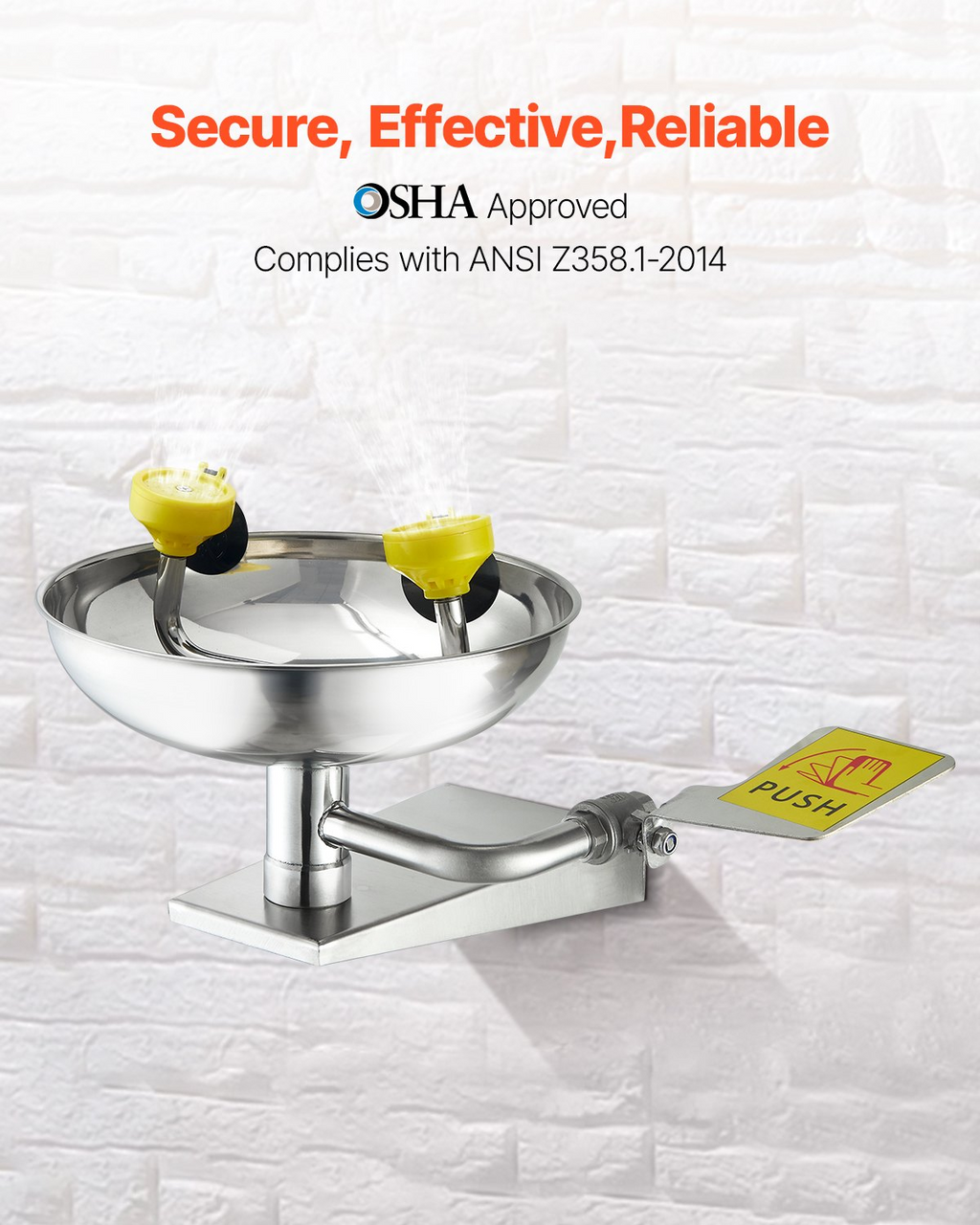 Estación lavaojos de emergencia VEVOR, lavaojos de pared de acero inoxidable, lavaojos de primeros auxilios de 41,7 x 32,8 x 24,8 cm