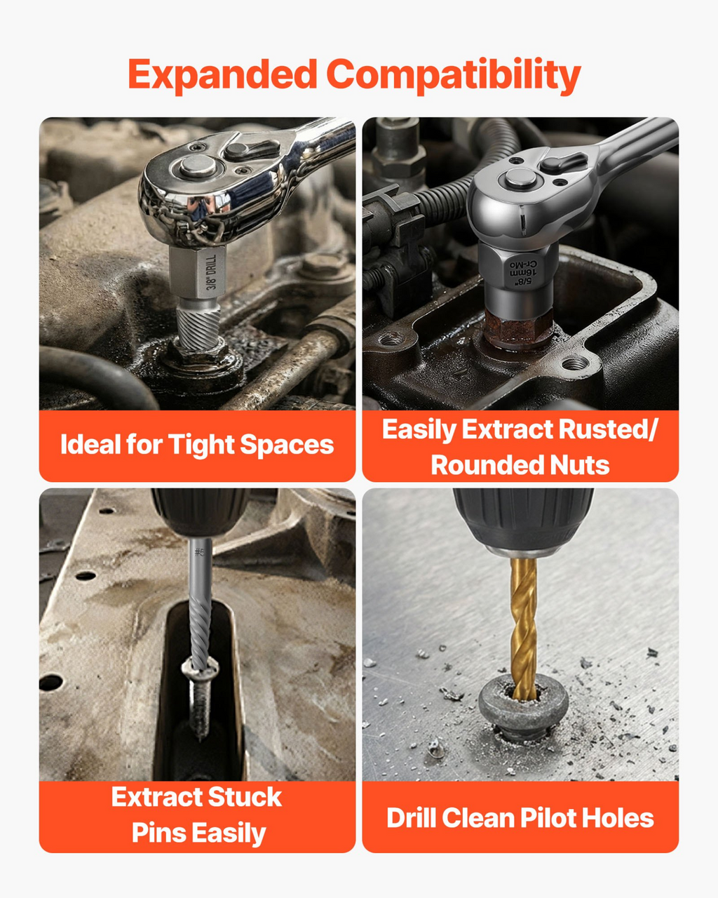 Juego de extractores de tornillos VEVOR (63 piezas) con extractores de tuercas y pernos, cortatuercas, machos de roscar, brocas, llaves inglesas, adaptadores