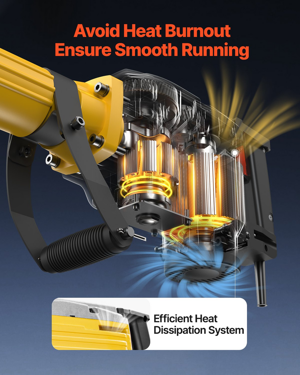 Martillo de demolición VEVOR, 2200 W, 1350 BPM, martillo rompedor de hormigón, martillo eléctrico de alta resistencia, 4 cinceles con guantes, mango frontal giratorio de 360° para zanjas y agujeros.