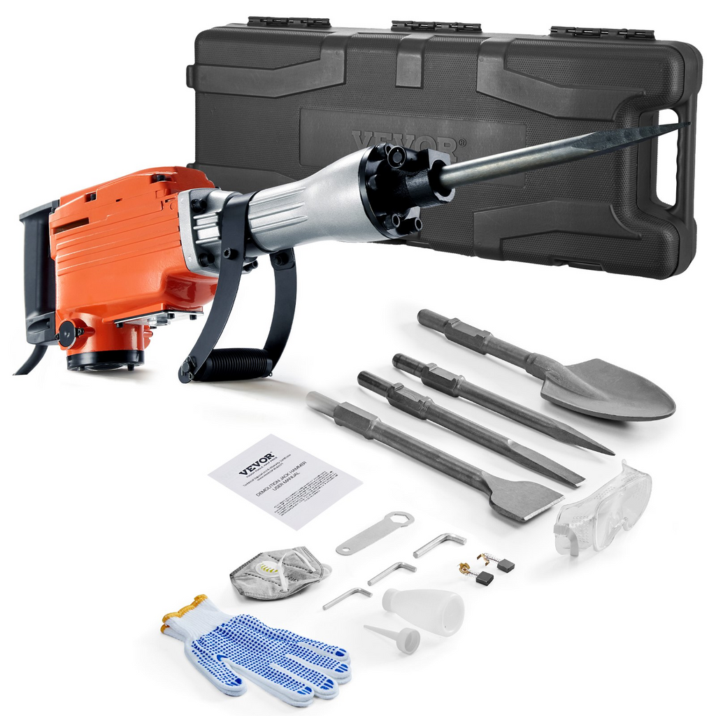 Martillo de demolición VEVOR, 2200 W, 1400 BPM, martillo rompedor de hormigón, martillo eléctrico de alta resistencia, 6 cinceles con guantes
