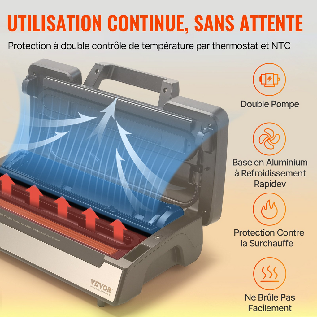 Selladora al vacío VEVOR, 90 kPa, 130 W, potente bomba doble y sellado doble, para almacenar alimentos secos y húmedos, sistema de sellado de aire