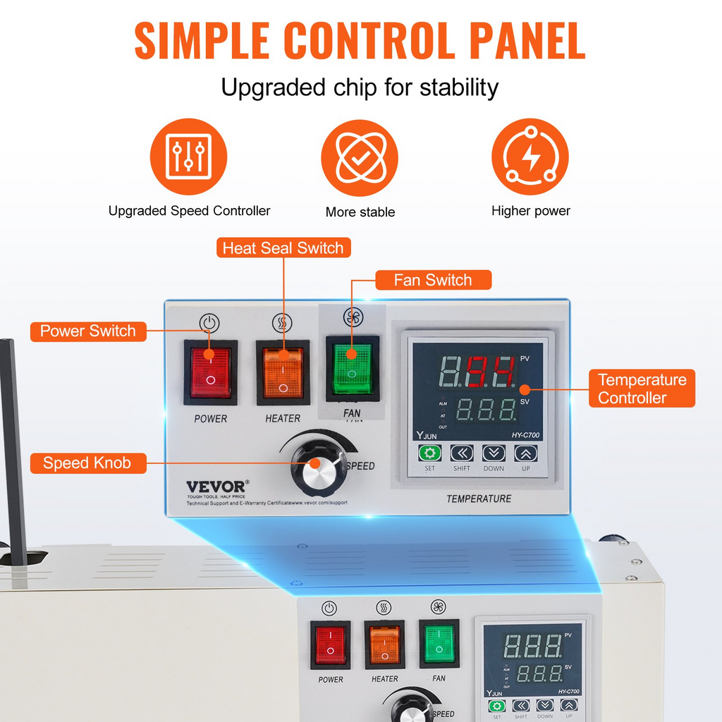 Selladora de banda continua para bolsas VEVOR, ancho de sellado de 6-12 mm (0,24-0,47 pulg.), selladora de banda vertical con control digital de temperatura