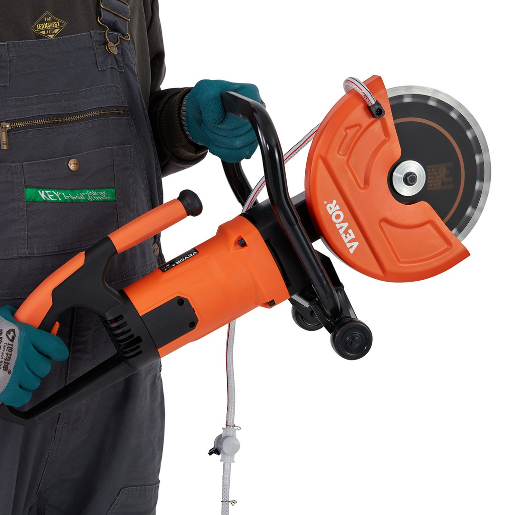 Sierra circular eléctrica para hormigón VEVOR de 23 cm (9") y 1800 W (con motor) con profundidad de corte de 8,9 cm (3,5"). Disco para trabajo en seco y húmedo
