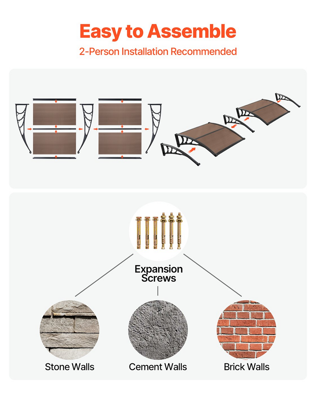Toldos VEVOR para puerta de entrada, 96 x 198 cm - 38 x 78 in toldos exteriores para puerta de entrada y ventana con drenaje y soporte metálico