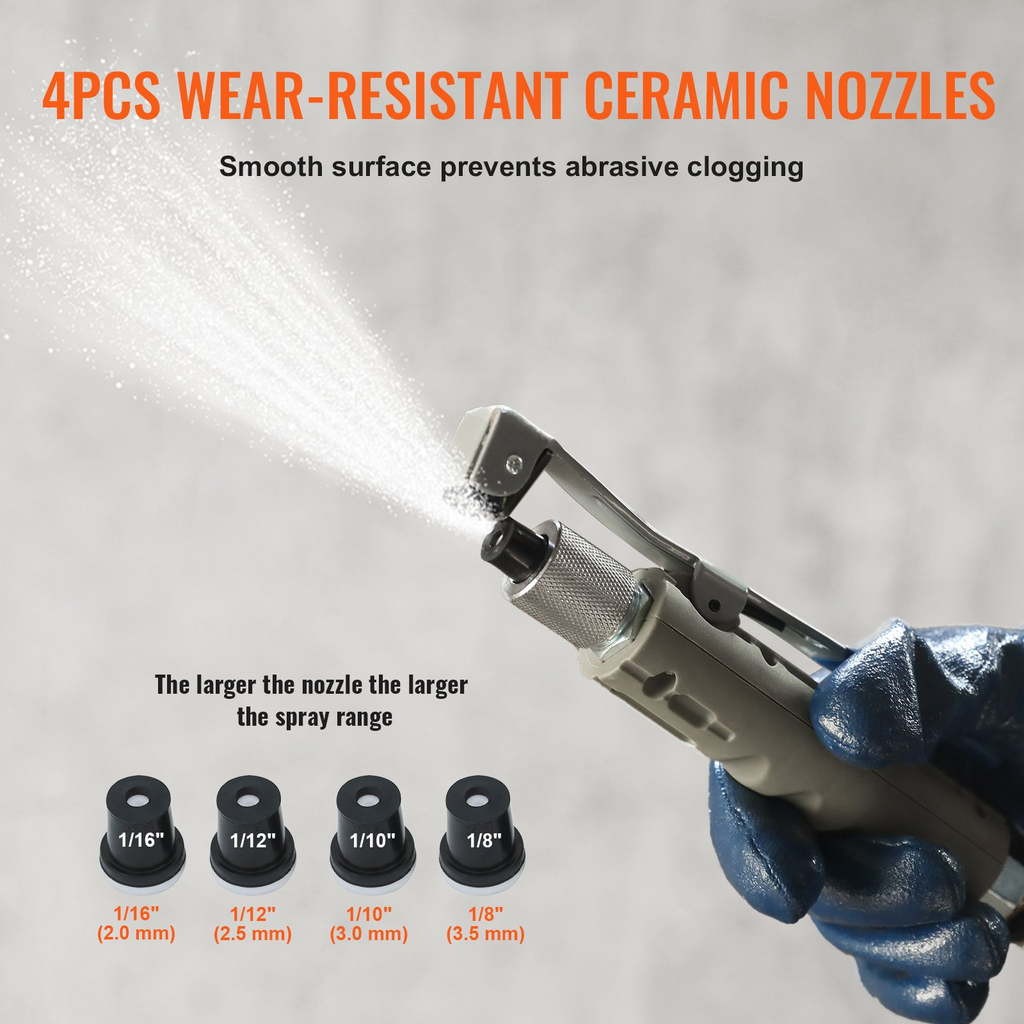 Máquina de chorro de arena VEVOR de 10 galones/40 l equipada con válvula de cierre de boquilla manómetro boquilla de cerámica ruedas de goma chorro de arena potente portátil