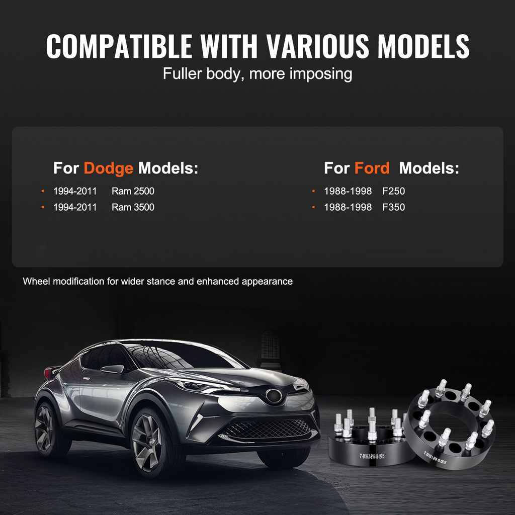 VEVOR 2" 8"x6.5" Espaciadores de rueda Adaptadores de rueda Espaciador forjado de 8 orejetas 2 piezas Negro