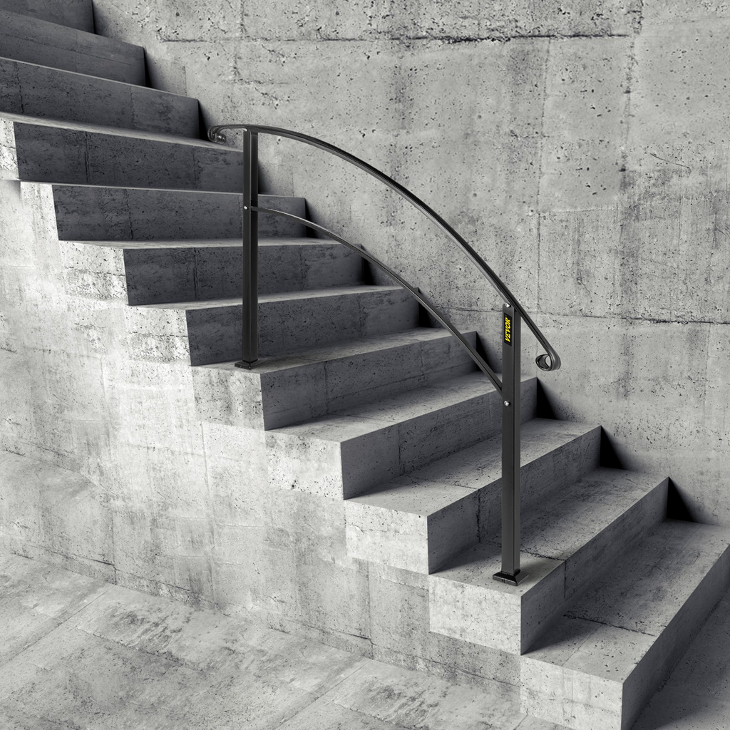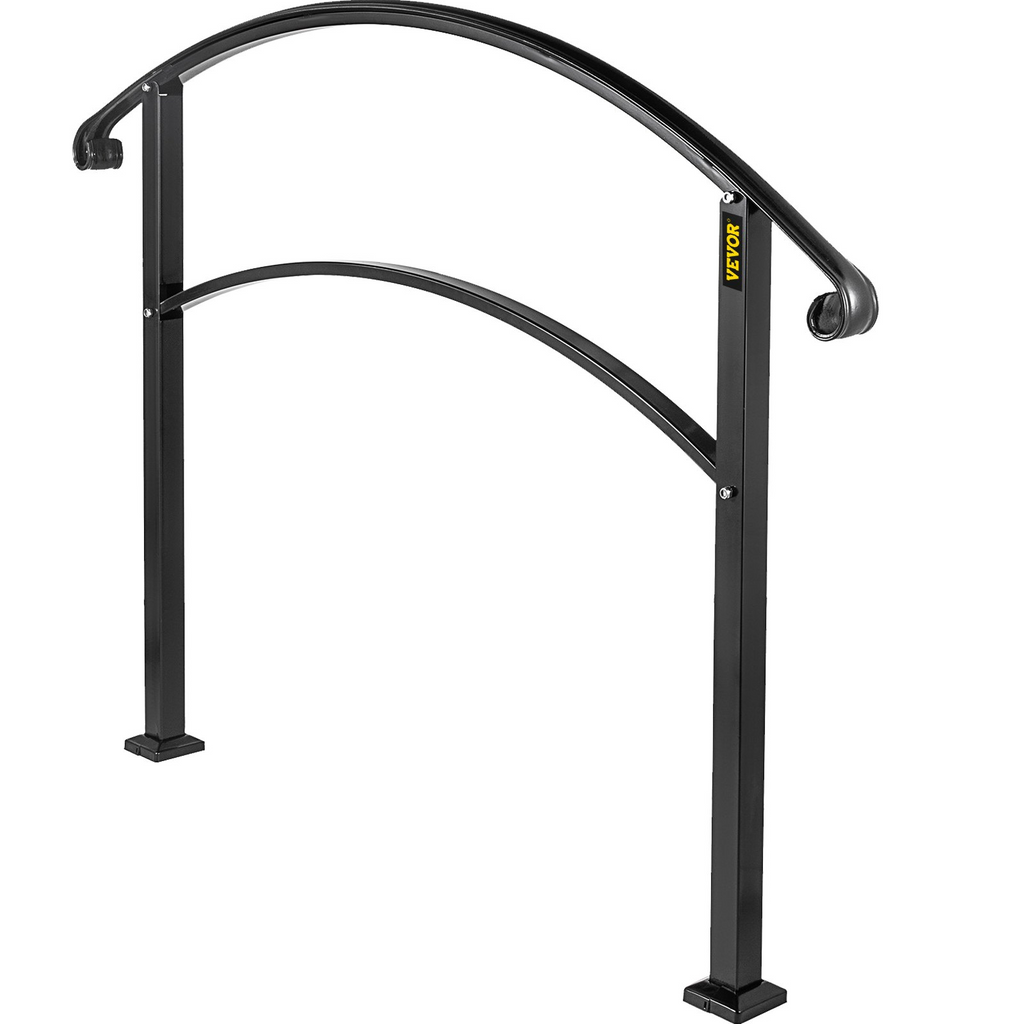 VEVOR 4-Step Handrail Fits 1 or 4 Steps Matte Black Stair Rail Wrought Iron Handrail with Installation Kit Hand Rails for Outdoor Steps
