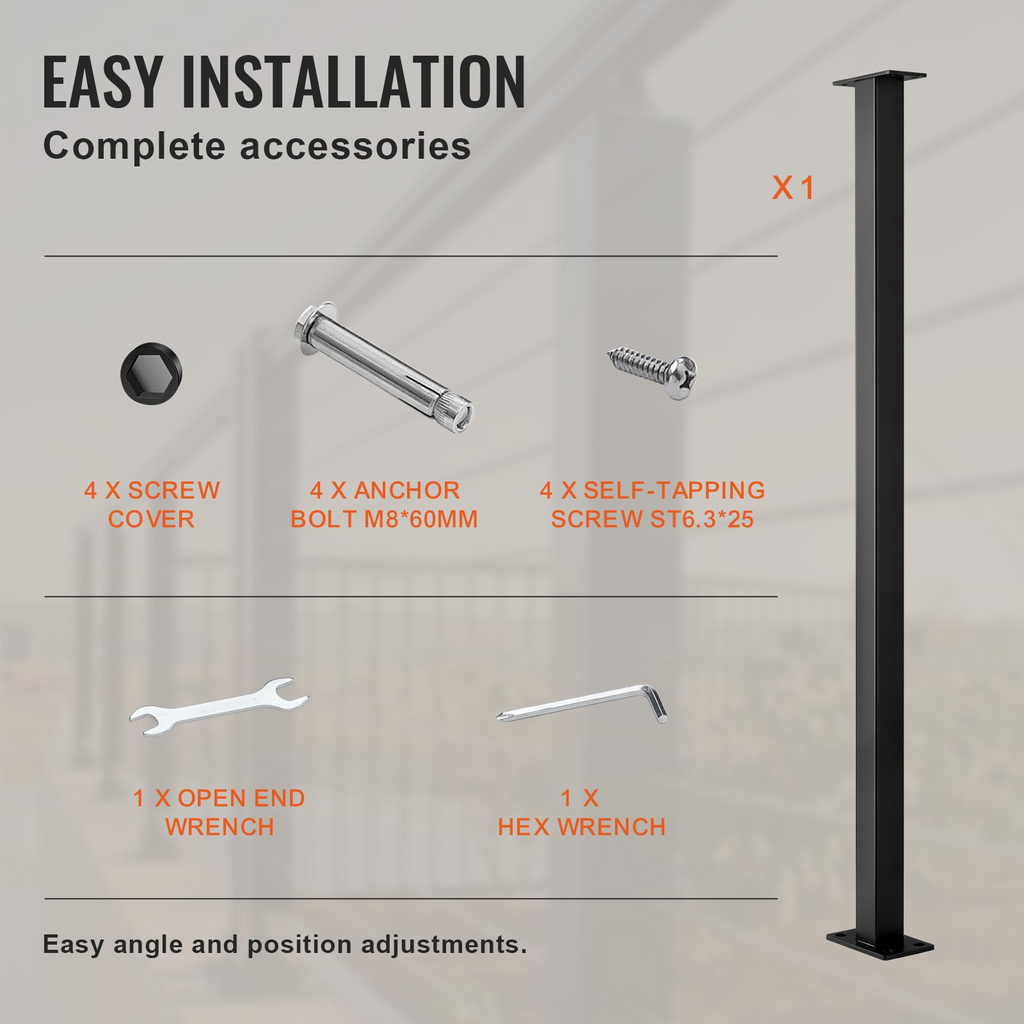 VEVOR Poste de pasamanos de cable para escaleras de cubierta, 36 x 1,5 x 1,5", acero inoxidable, acabado cepillado, pasamanos de cubierta, kit de pasamanos de escalera sin orificios, con soporte de montaje, color negro,