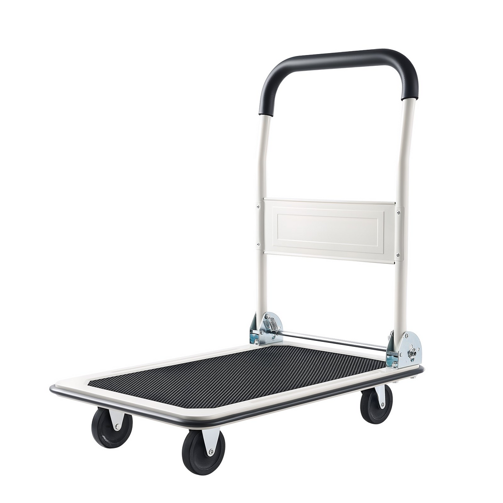 VEVOR - Carretilla de empuje plegable con plataforma y ruedas giratorias, capacidad de carga de 150 kg, asa de empuje compacta
