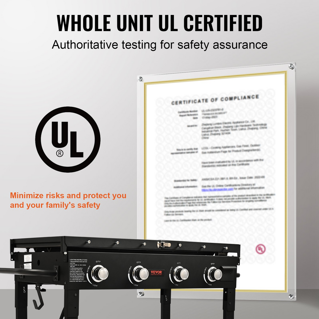 Plancha comercial VEVOR sobre carrito de 36" 4 quemadores - 60 000 BTU