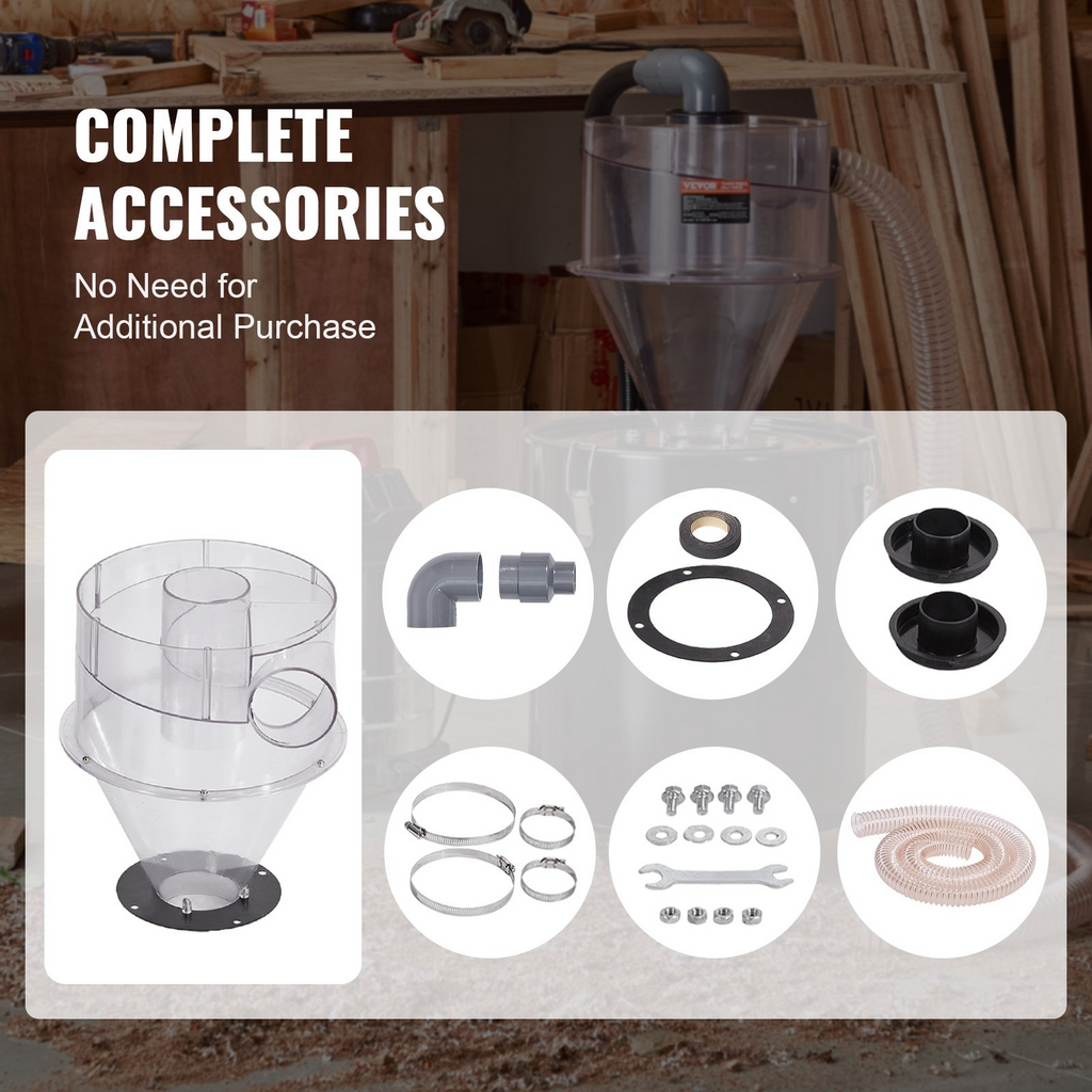 VEVOR Separador de polvo ciclónico Separador de aspiradora de 4" para tanque de 5-10 galones