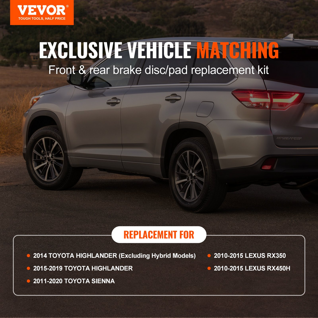 Pastillas de freno delanteras y traseras ranuradas perforadas VEVOR para Toyota Sienna Highlander, pastillas de freno