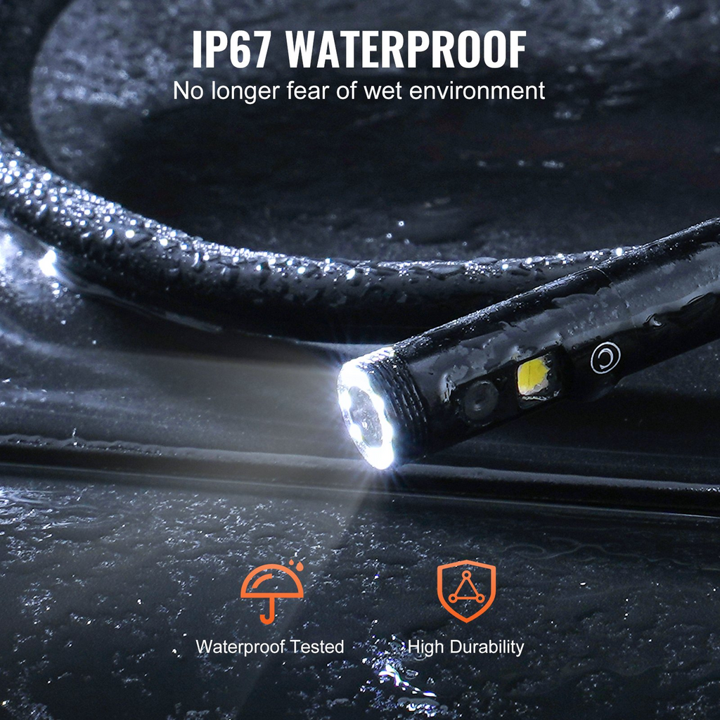 Cámara endoscópica VEVOR con luz, endoscopio industrial de doble lente, cámara de inspección 1080P con pantalla de 4,3", 8 + 1 luces, zoom 4X, cámara serpiente impermeable IP67 para automóviles y plomería (cable de 5 m, tarjeta de 32 GB)