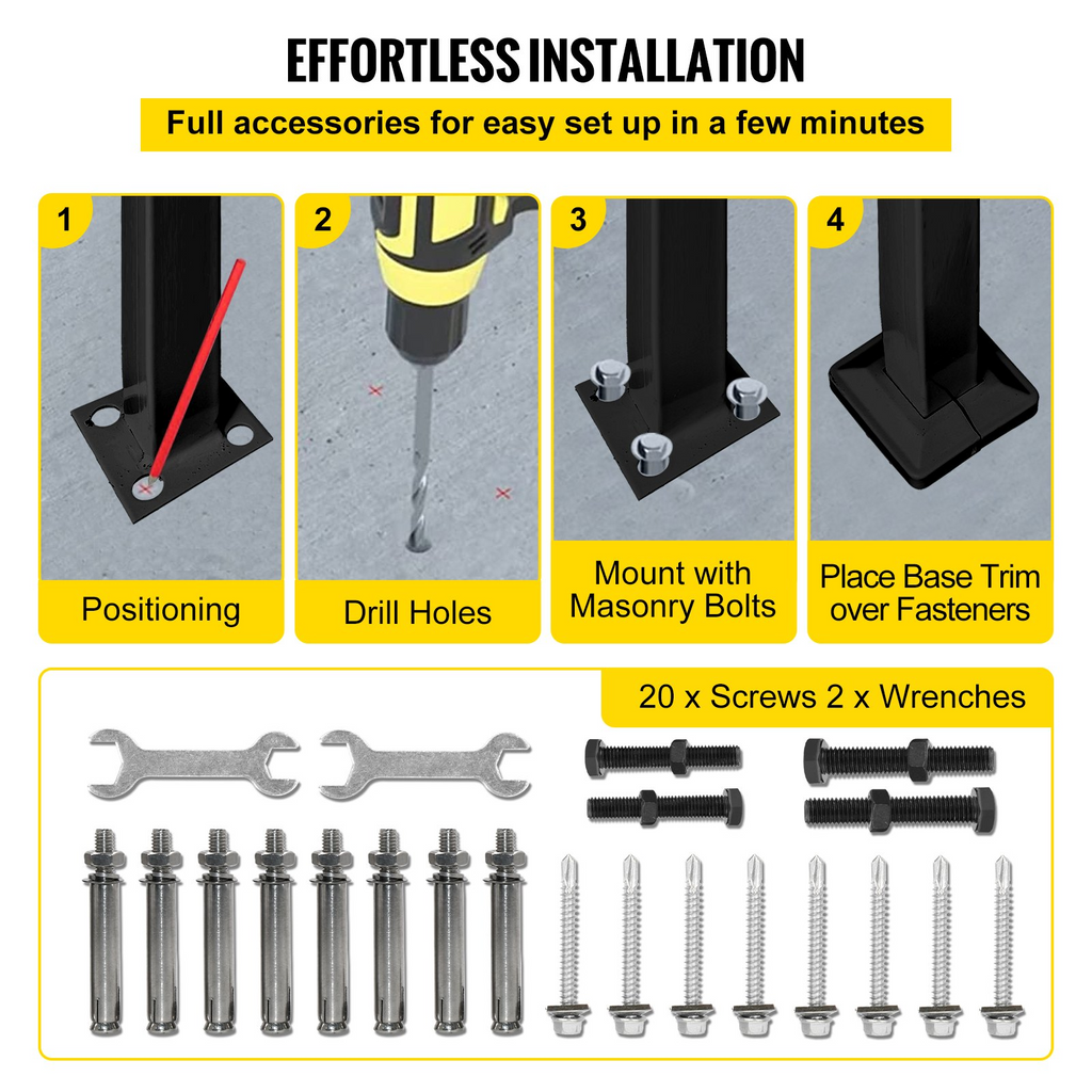 Steps: 1 or 2,Upper Post Height: 38.2"/97 cm,Color: Black,Model: Arch#1,Max Height for Steps: 6.8"/17.3 cm,Product Weight: 18.3 lbs/8.3 kg,Material: Wrought Iron,Lower Post Height: 38.5"/97.8 cm,Distance Between Posts: 11.8"/30 cm